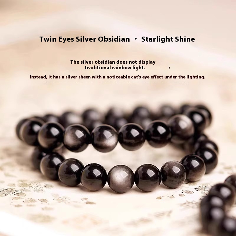 Natural Silver Obsidian Bracelet Silver Yaoshi Bracelet Cat's Eye Obsidian Lucid Transporter Men's And Women's Lion Head Jewelry