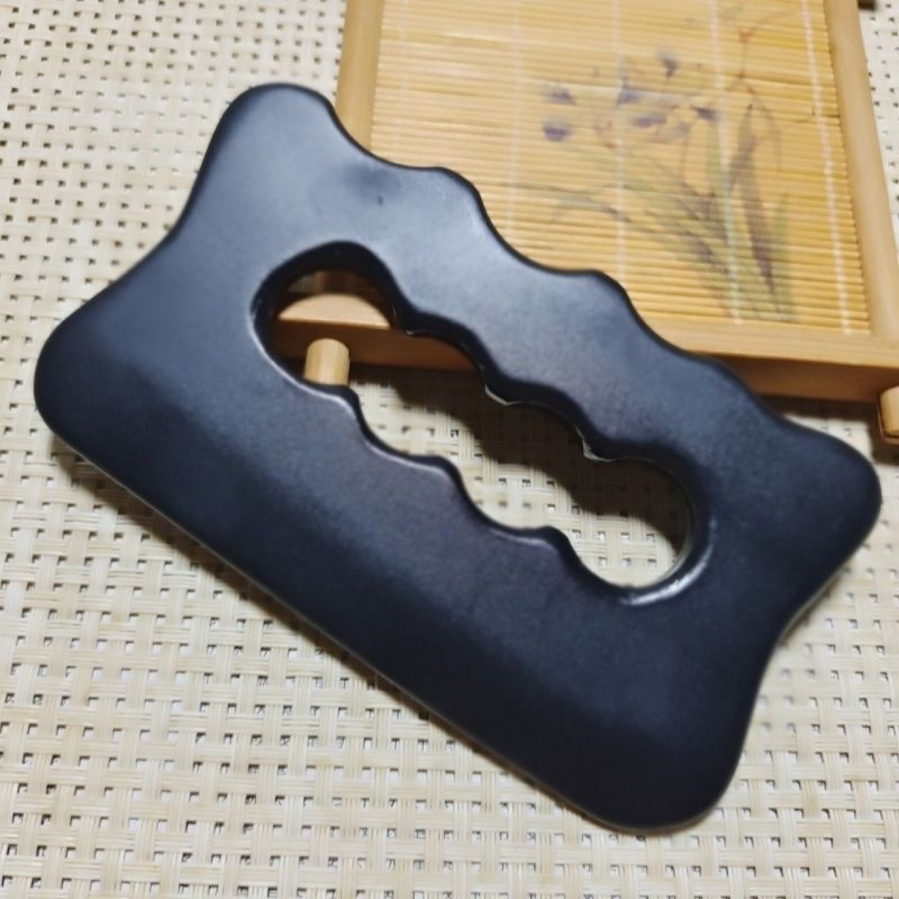 Black Stone Scraping Plate Four-hole Scraping Plate Scraping Knife Tendon Massage Stone Jade Meridian Massager