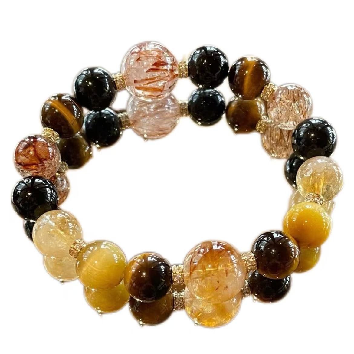 Natural Crystal Super Golden Big Comprehensive Star Bracelet Exquisite Yellow Tower Crystal Tiger Eye Amethyst Strawberry Crystal