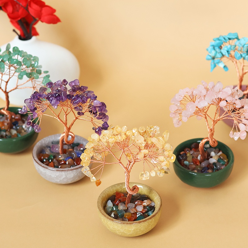 Yonghe Cornucopia Crystal Fortune Tree Citrine Amethyst Fortune Tree Home Office Desktop Ornaments