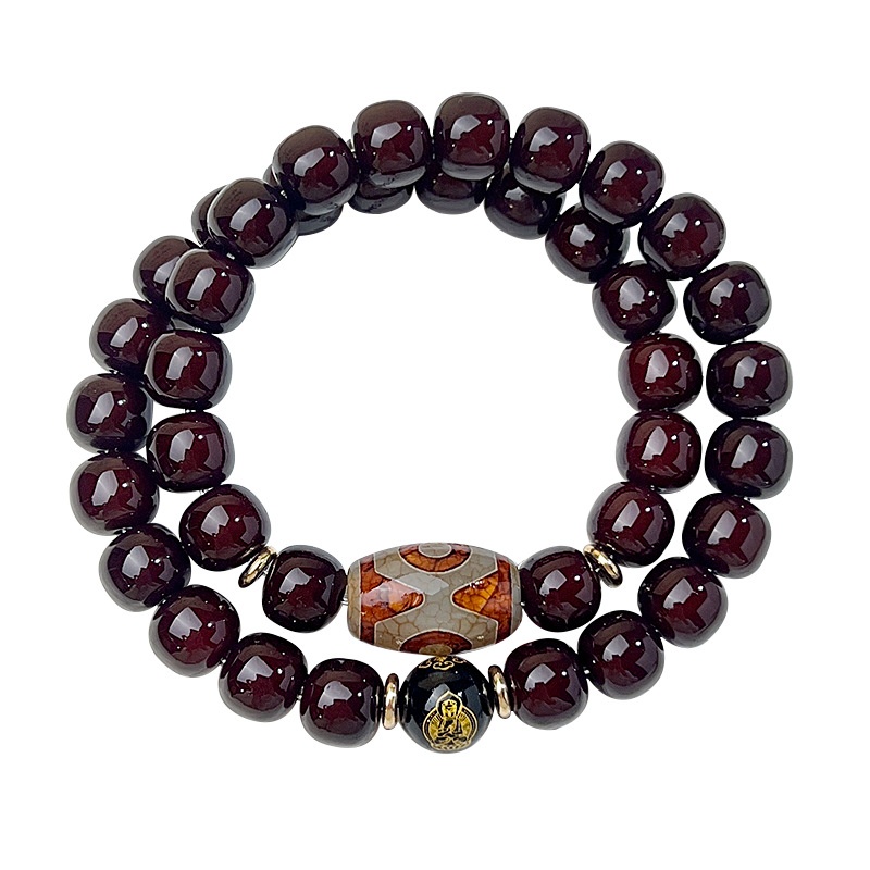 [Zodiac Patron Saint] Bodhi Double-circle Bracelet With Loose Heart Old Material Male Ben-life Buddha Bodhi Buddha Beads Wen Play Obsidian