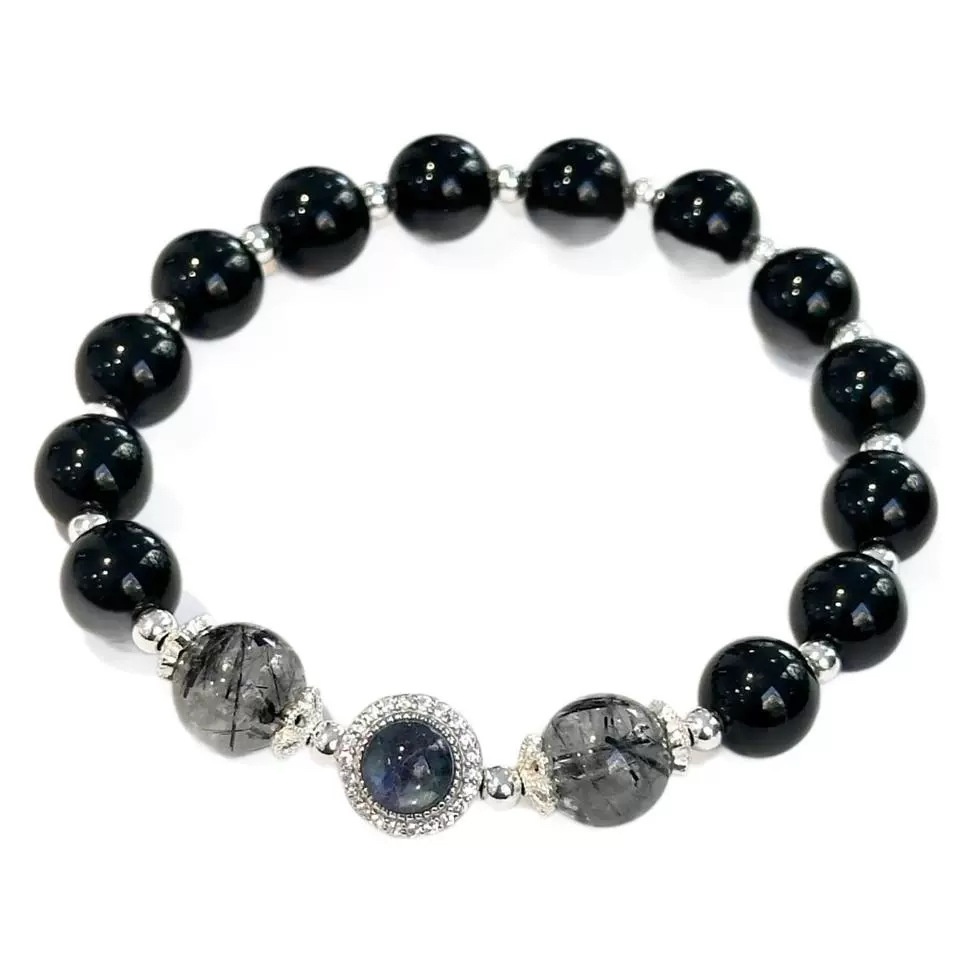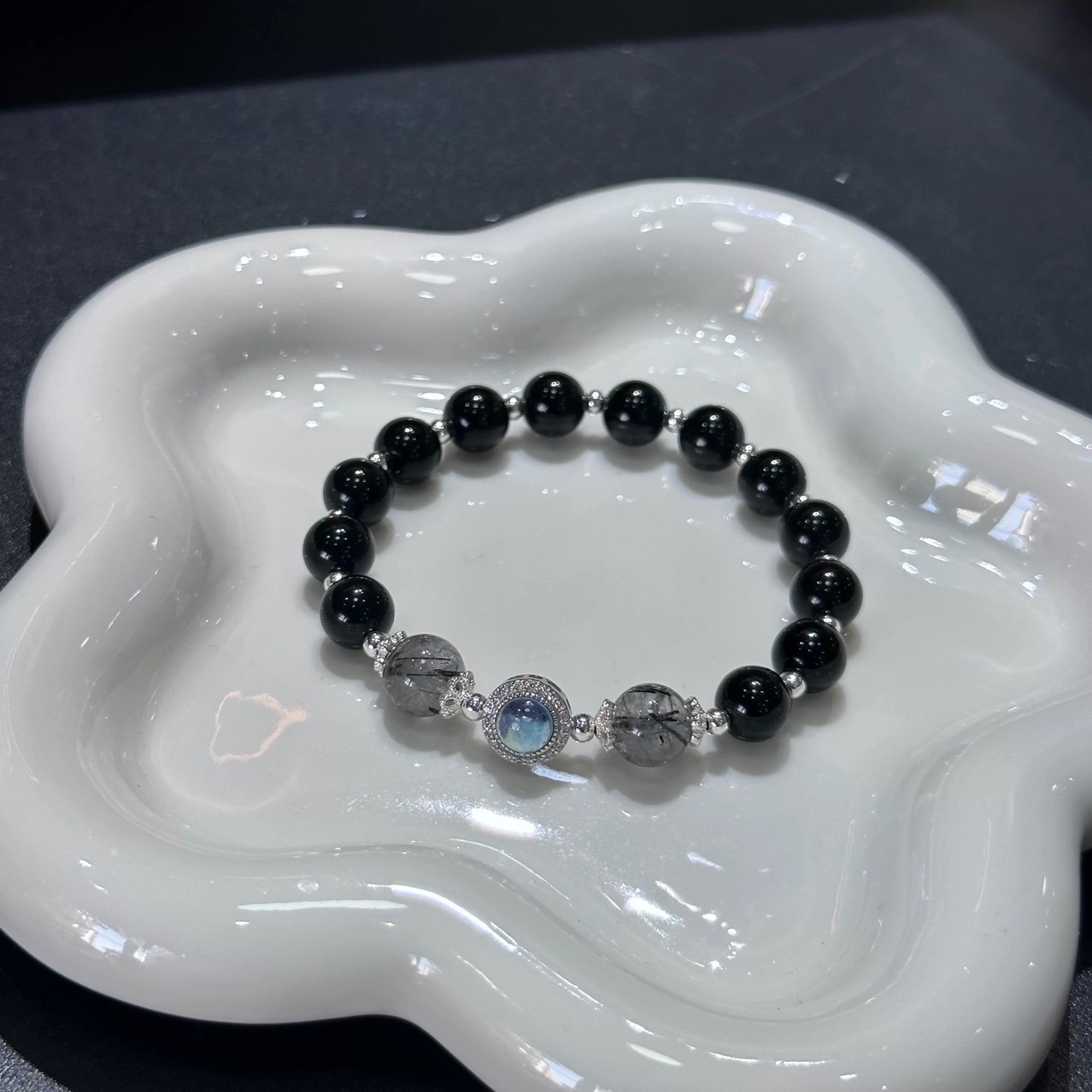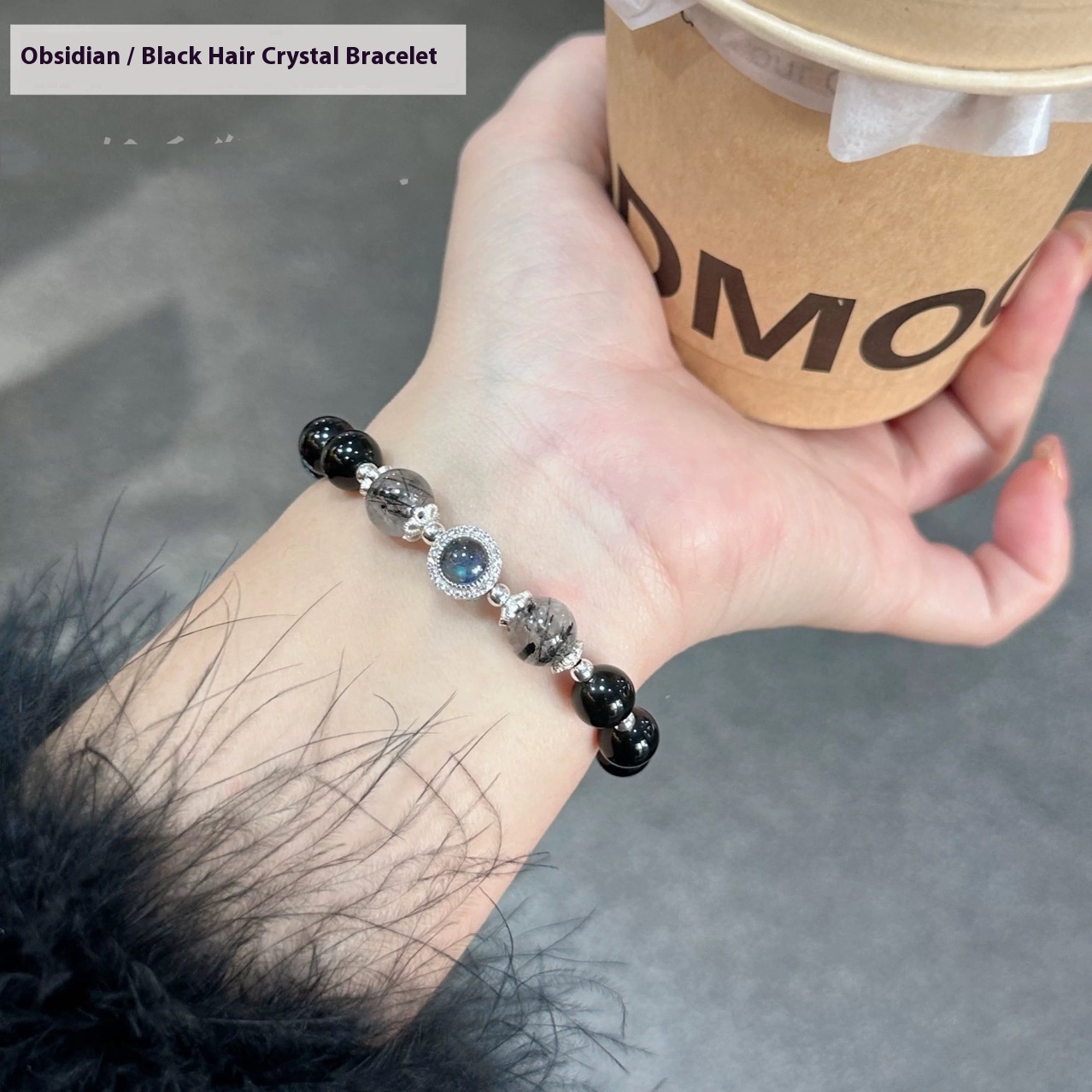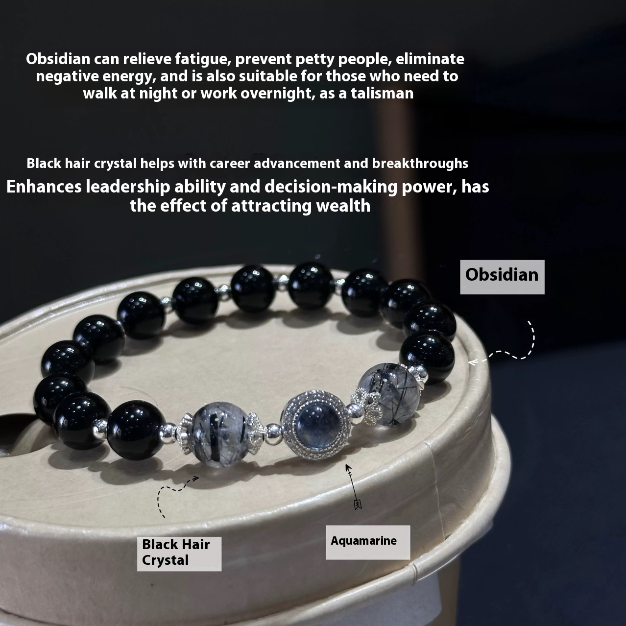 Natural Obsidian Bracelet Women's Exquisite Niche Design S925 Sterling Silver Aquamarus Transfer Bracelet Exquisite Gift