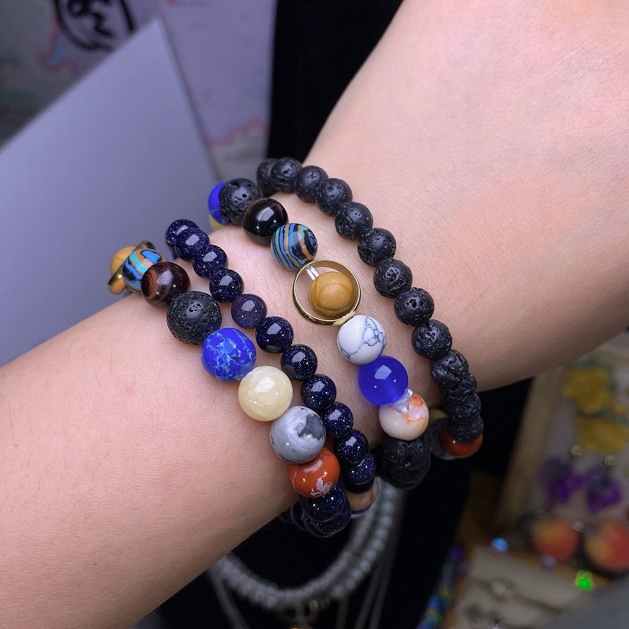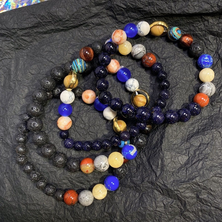 Cosmic Galaxy Eight Planets Elastic Bracelet Couple Star Bracelet Milky Way Volcanic Stone Beads Planet Bracelet