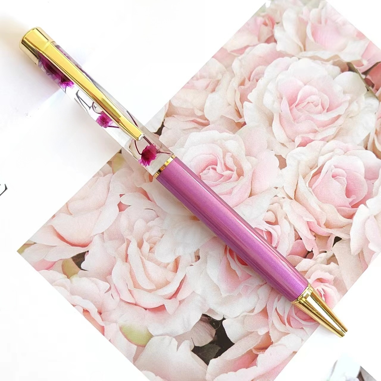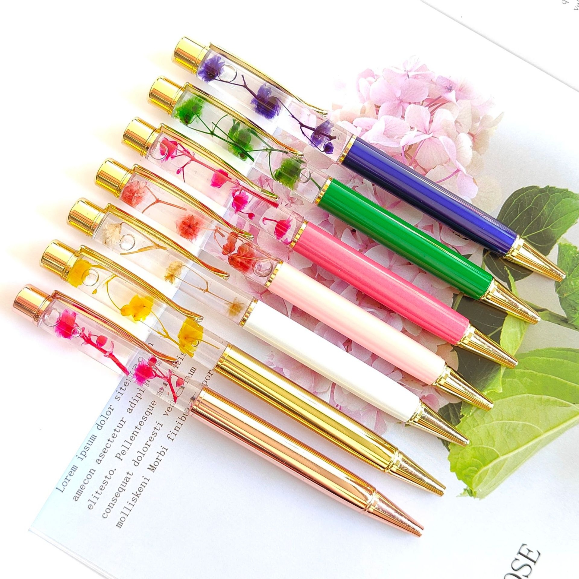 Dried Flower Oil Pen DIY Floating Object Oil Pen Gold Foil Paper Water Oil Pen Gift Advertising Diamond Metal Ball Pen