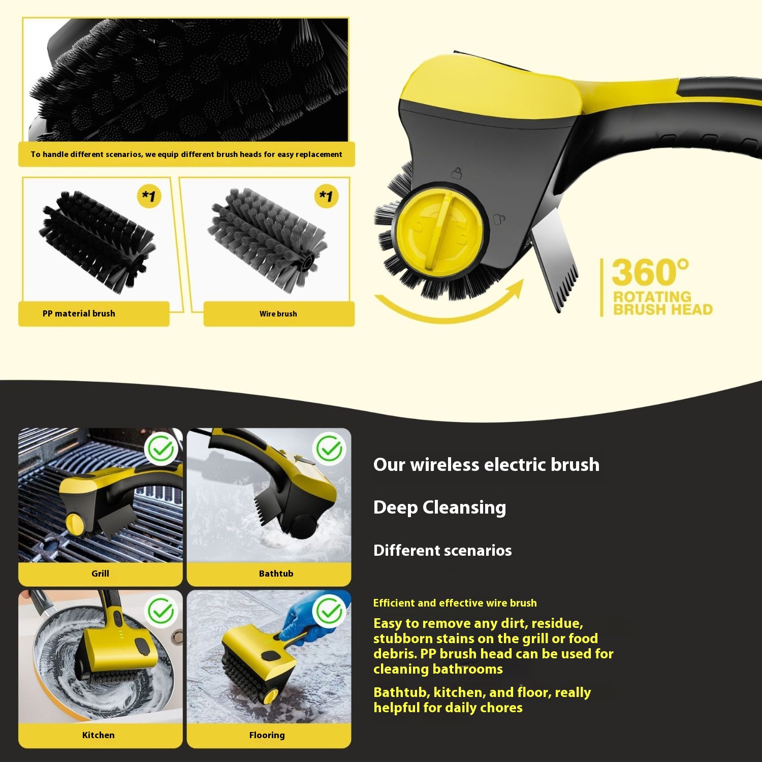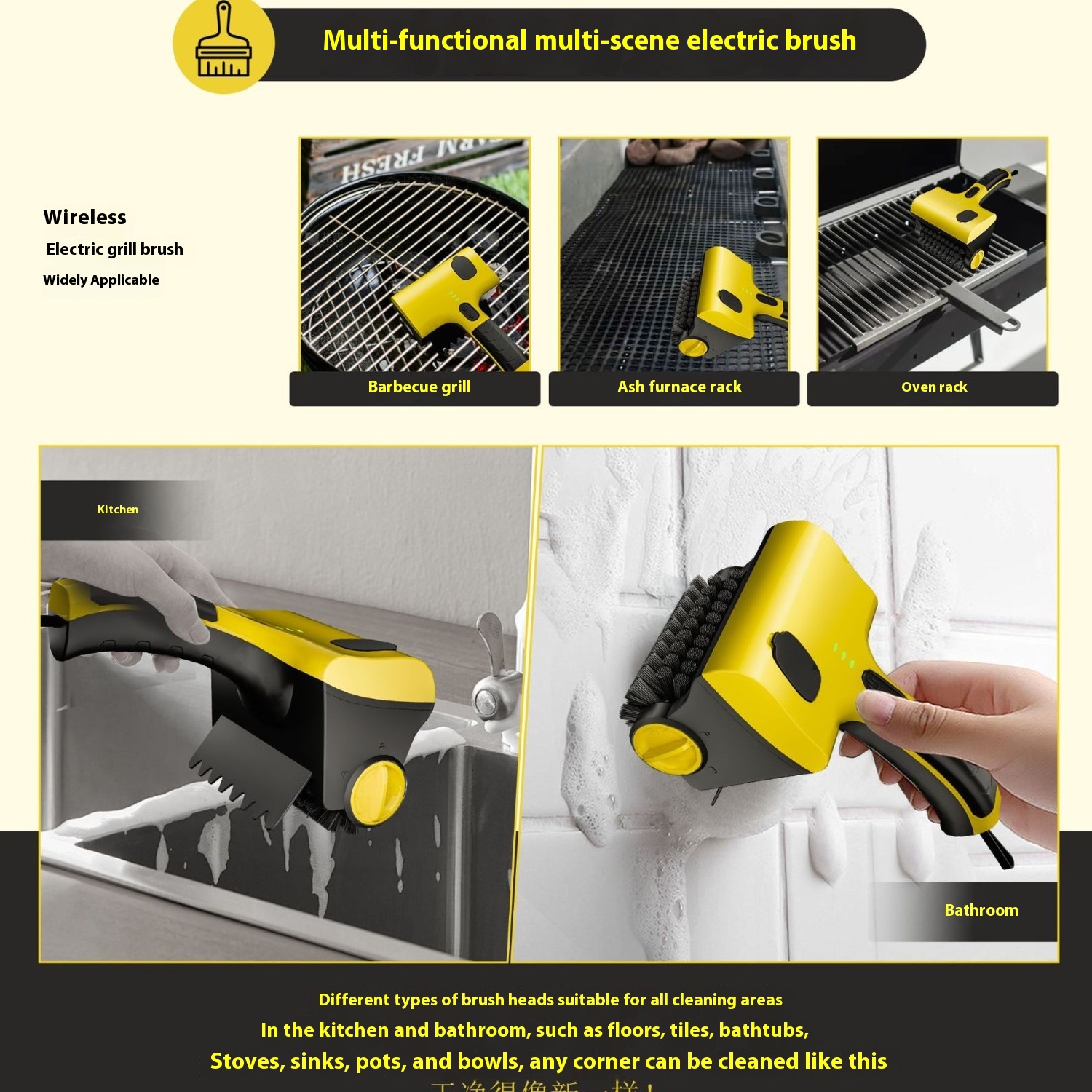 Explosion Electric Barbecue Brush Household Kitchen Tile Multifunctional Replaceable Brush Head Wireless Cleaning Brush God