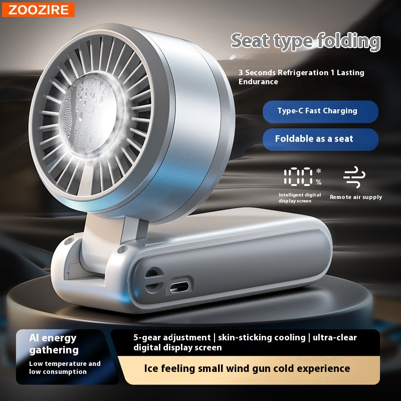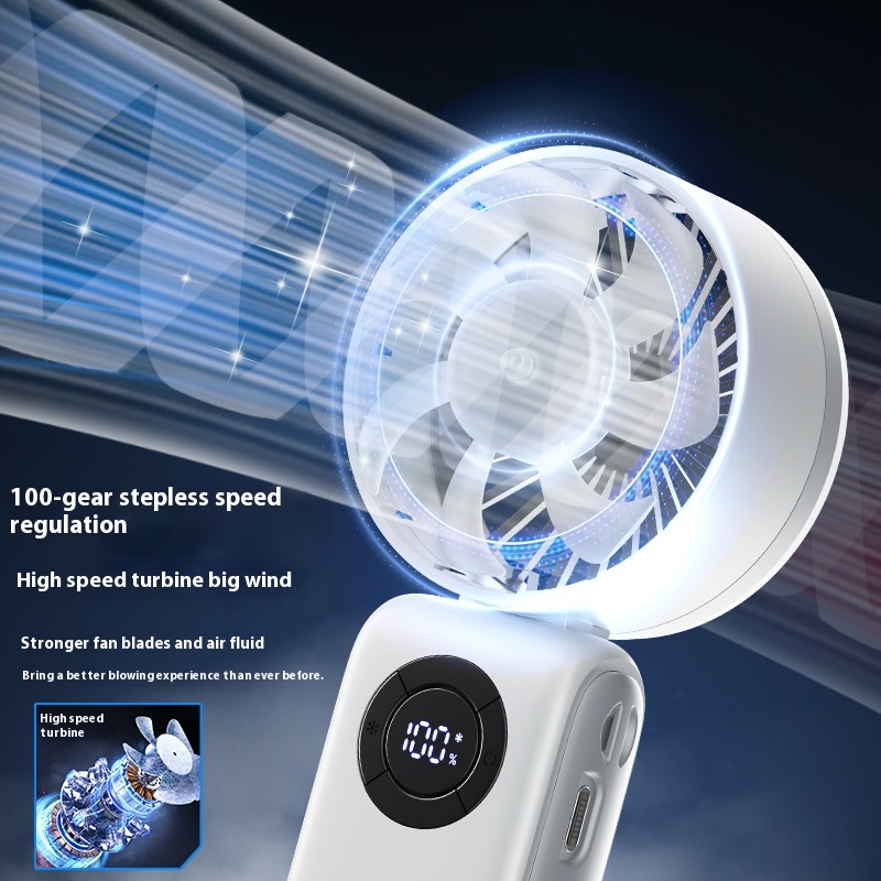 Ice High-speed Fan Semiconductor Refrigeration Handheld Fan Portable Neck Digital Display Folding Fan