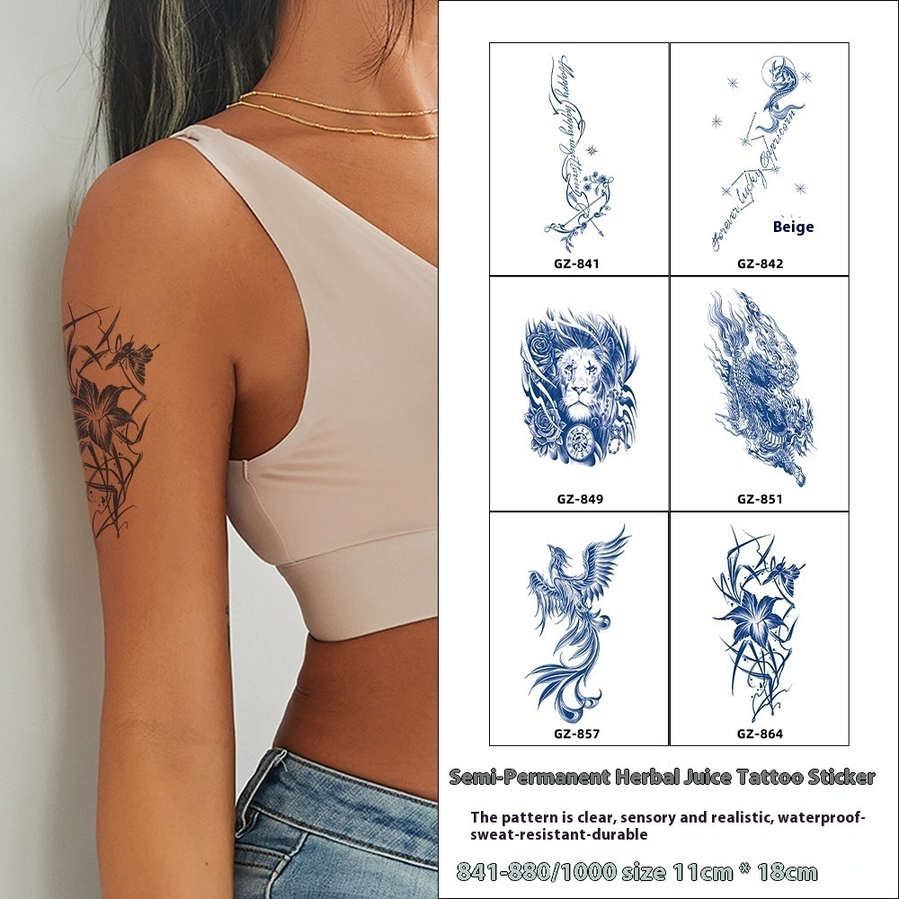 Juice Herbal Tattoo Sticker Semi-permanent Non-reflective Simulation Pattern Waterproof Long-lasting Butterfly Flower Tattoo Sticker For Men And Women