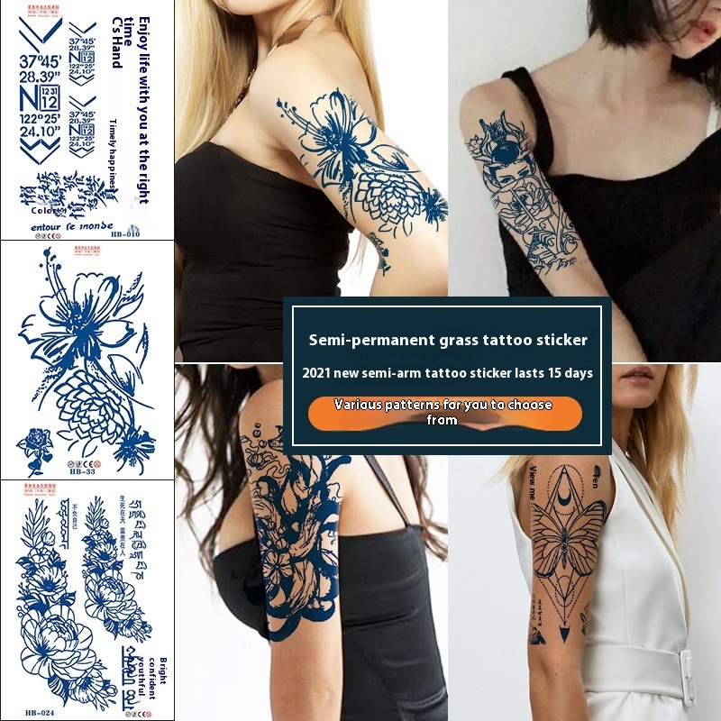 Semi-permanent Herbal Juice Tattoo Sticker Waterproof Sweat-proof Long-lasting Simulation Big Figure Flower Arm Tattoo Sticker