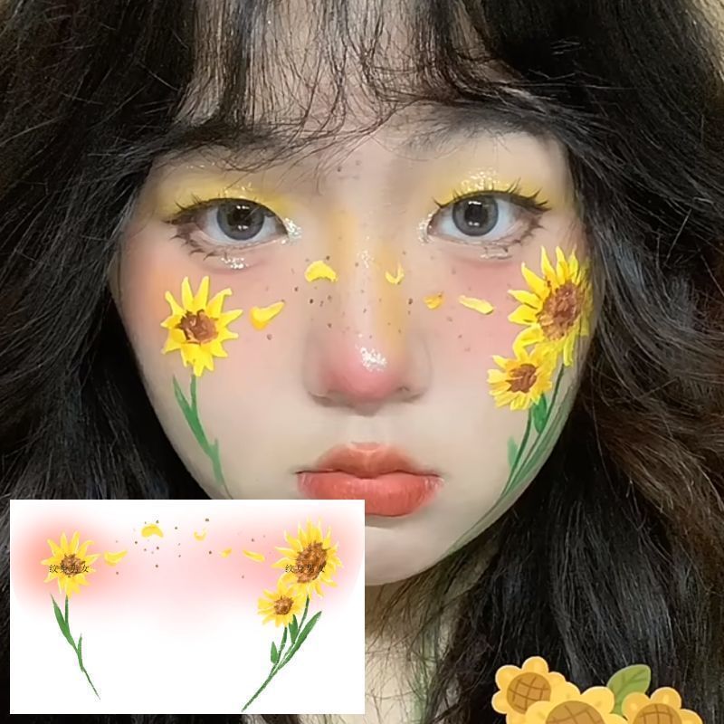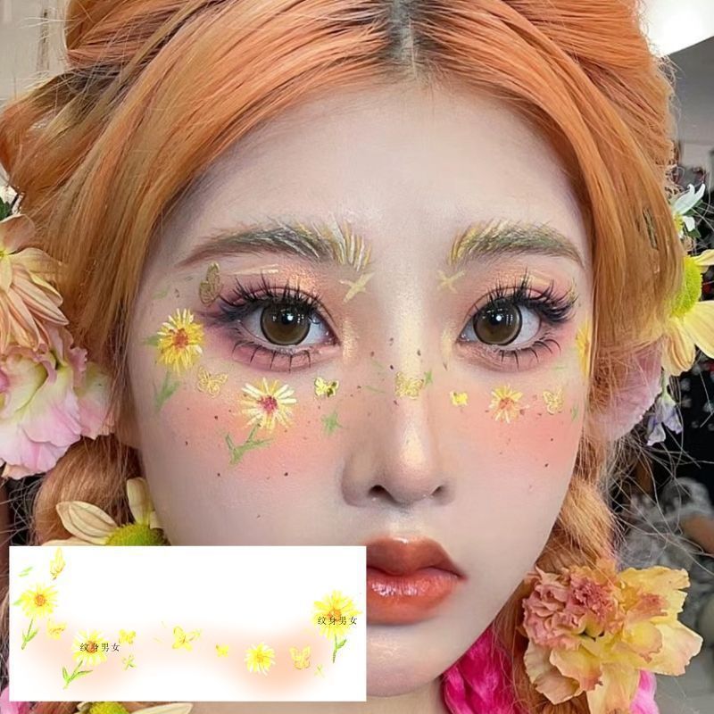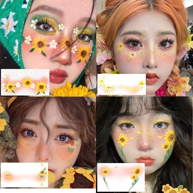 Sunflower Makeup Face Sticker Tattoo Sticker Tagram Style Children's Cartoon Sunflower Tattoo Sticker Creative Face Makeup
