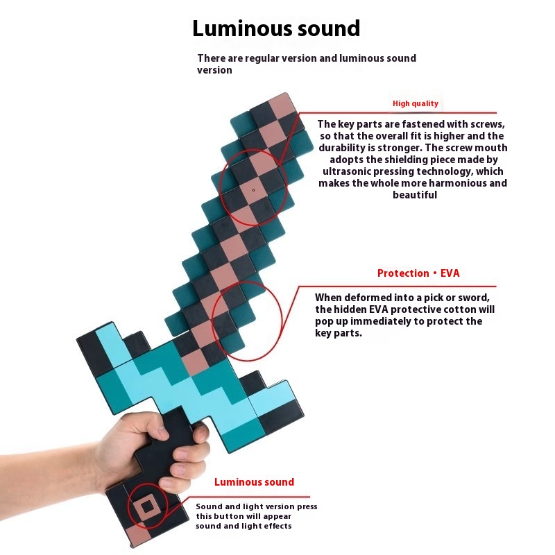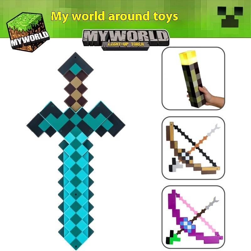 My World Toy Bow And Arrow Diamond Sword And Pick Two-in-One Deformation Sword Sound And Light Sword Weapon Game Surrounding Male Gifts