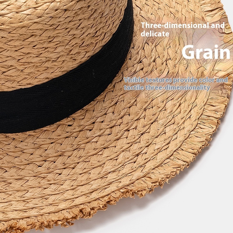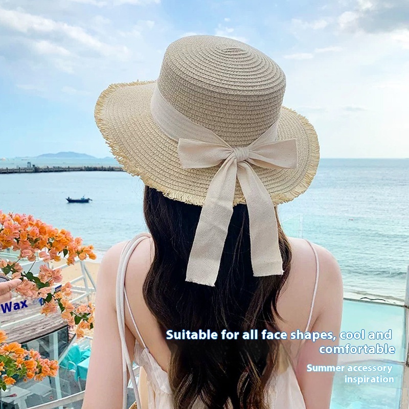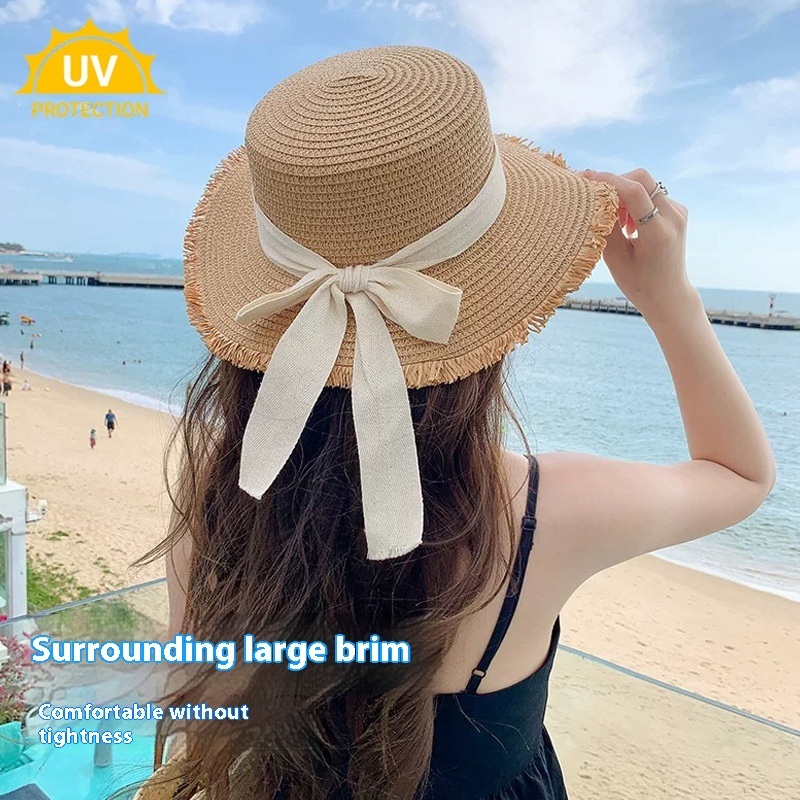 Summer Women's Big Brim Sunscreen Hat Bow Ribbon Flat Top Straw Hat Seaside Beach Holiday Travel Sun Hat Top Hat