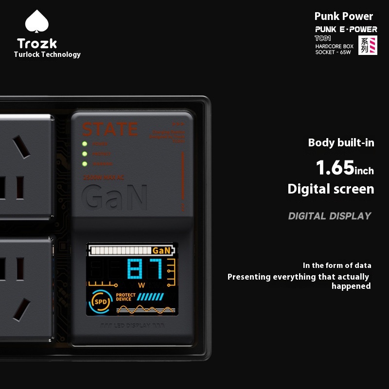 Trogue Socket Headlamp 65W Gallium Nitride Desktop Multi-port Charger Power-TC01 E-sports