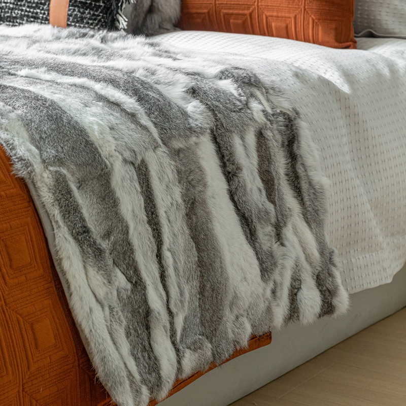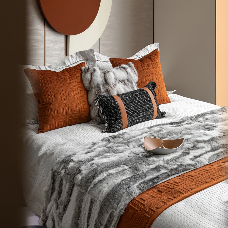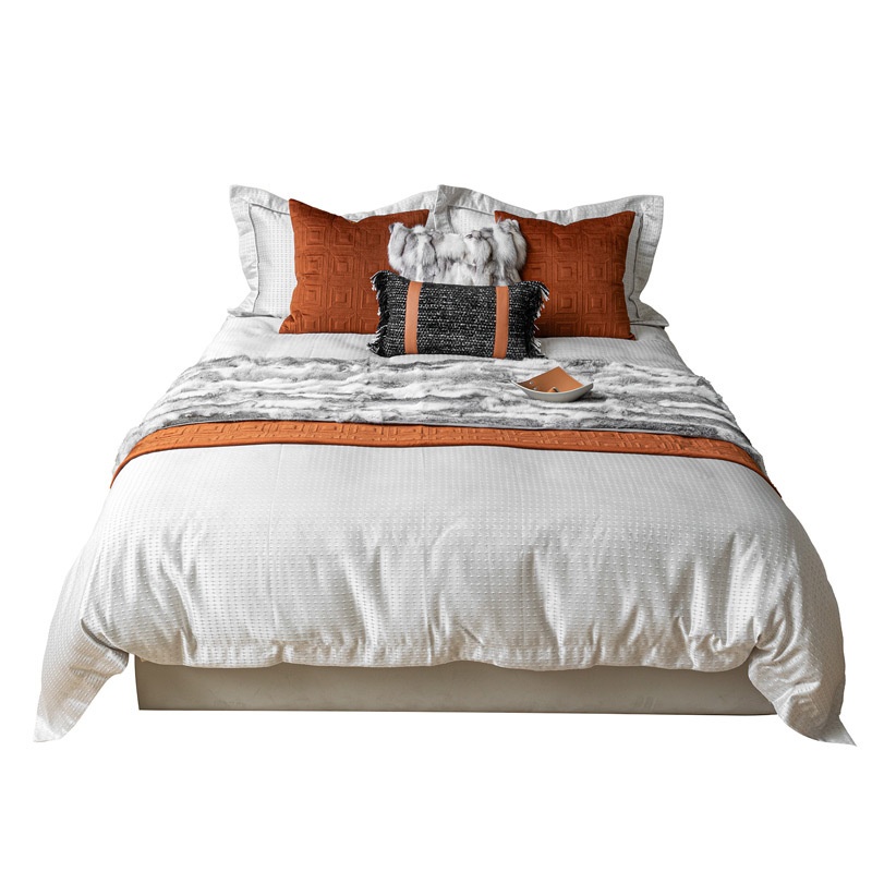 Modern Light Luxury Orange Bedding Soft Multi-piece Set Model Room Exhibition Hall Display Four-piece Set Pillow Bed Flag Combination