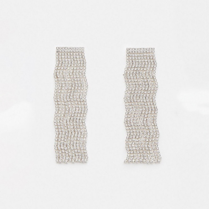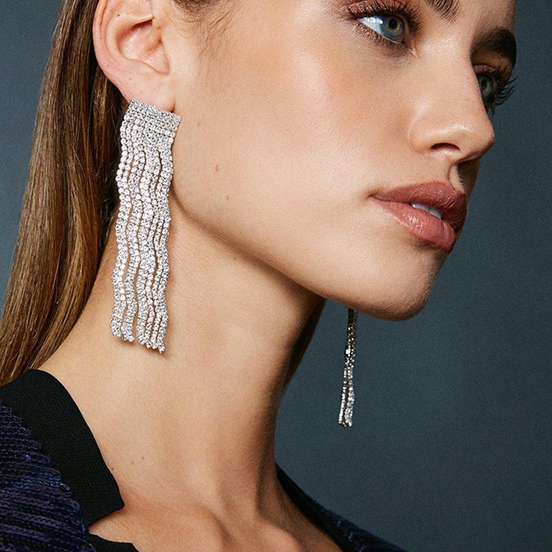 European And American Geometric Tassel Earrings Long Simple Rhinestone Earrings Exaggerated Accessories Women's Earrings