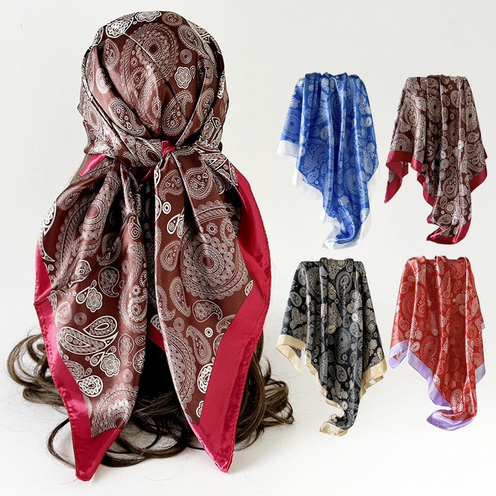 European And American Cashew Printed Headscarf Women's Silk Scarf 90cm Middle East Large Square Scarf Shawl Satin Scarf