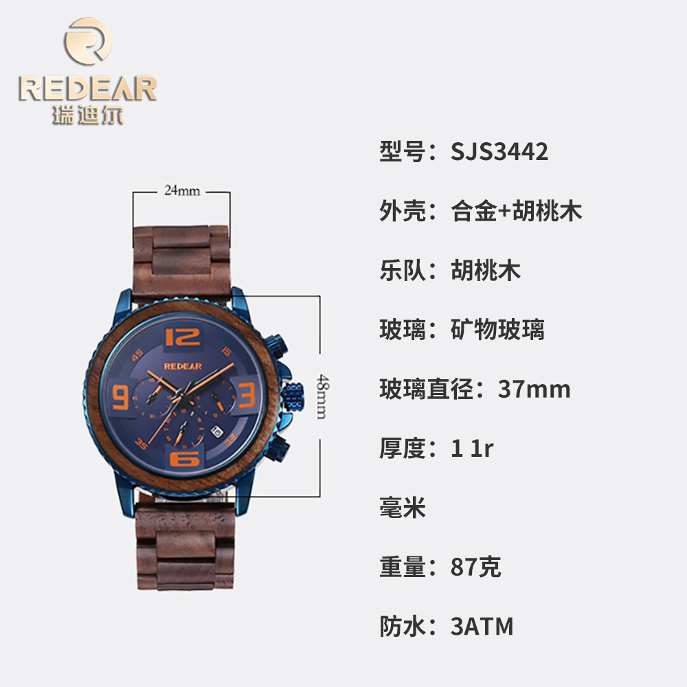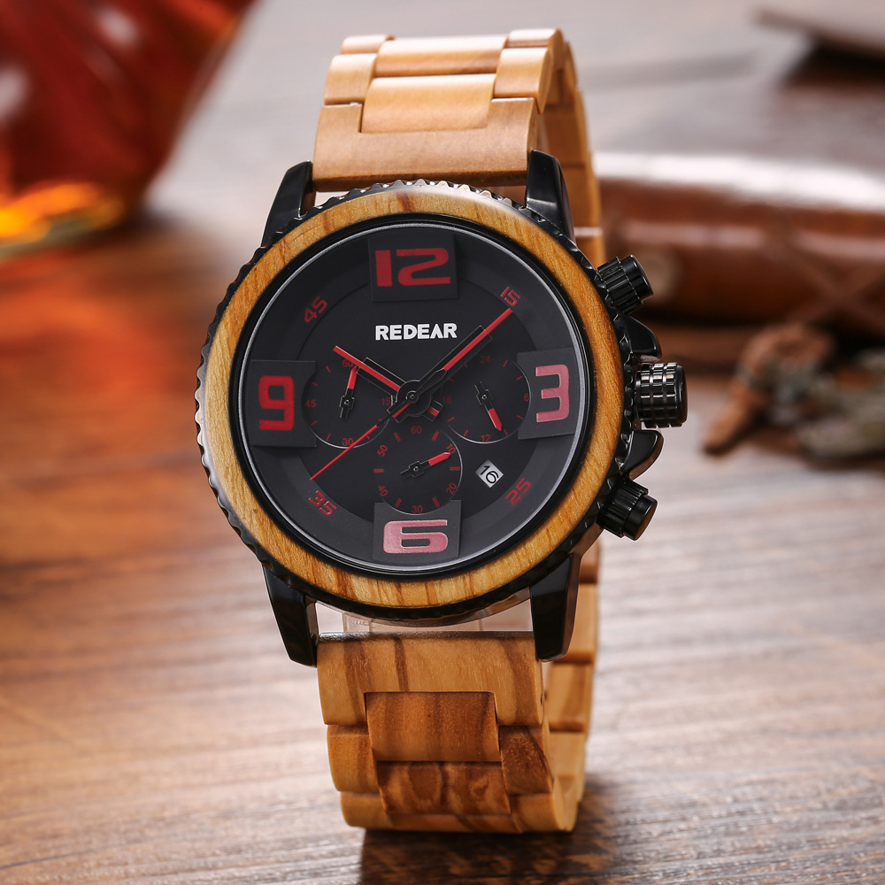 REDEAR Foreign Trade Large Dial Waterproof Quartz Watch Large Digital Time Display Wooden Watch