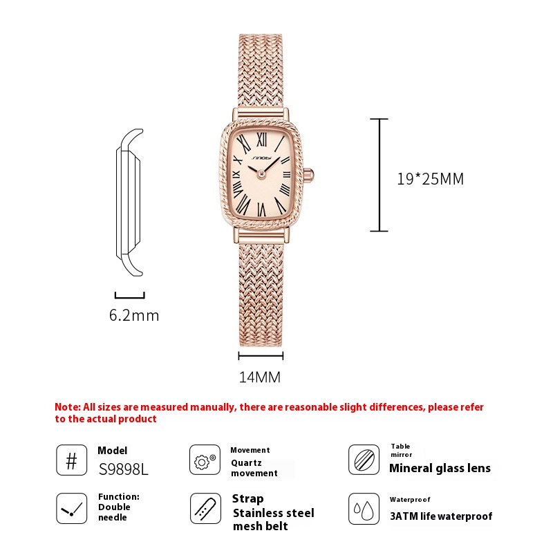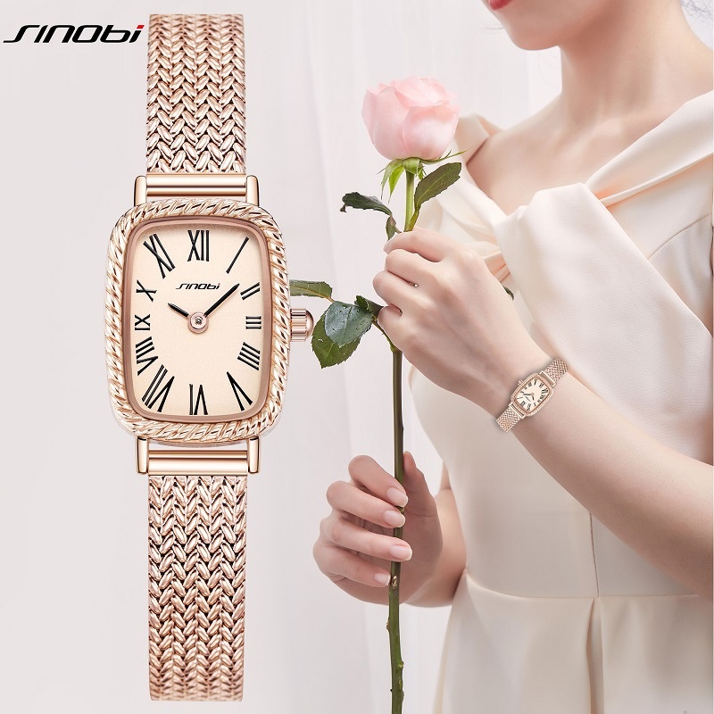 Sinobi Watch Women's Watch Rose Gold Quartz Watch Women's Niche High-End Waterproof Small Square Watch Guangzhou Watch