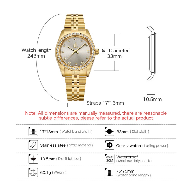 Sk Women's Watch Women's Steel Band Watch Business Light Luxury Fashion Waterproof Diamond British Watch 0156