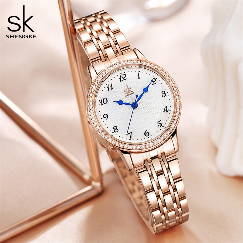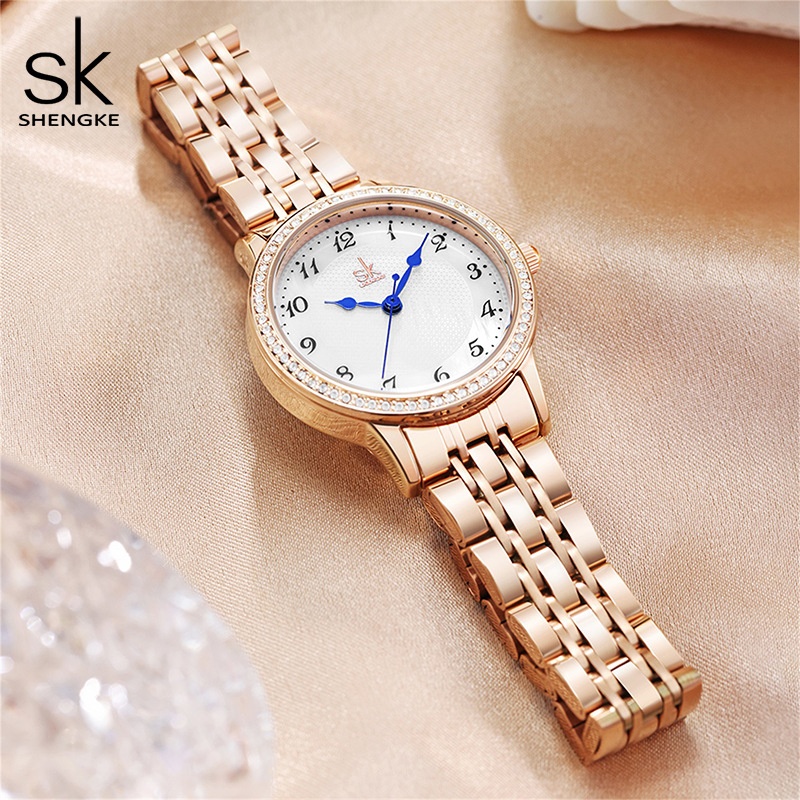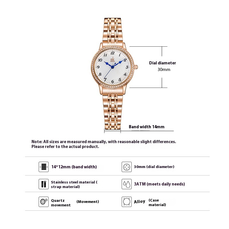 SK Ladies Watch Women's Small And Exquisite Diamond-encrusted Small Dial Steel Band Watch Waterproof Shenzhen Watch Shake Tone 0199