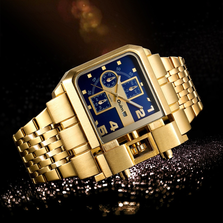 Oulm Gold Large Dial Men's Watch Steel Band Calendar Square Quartz Men's Watch European And American Casual