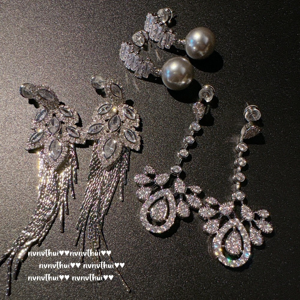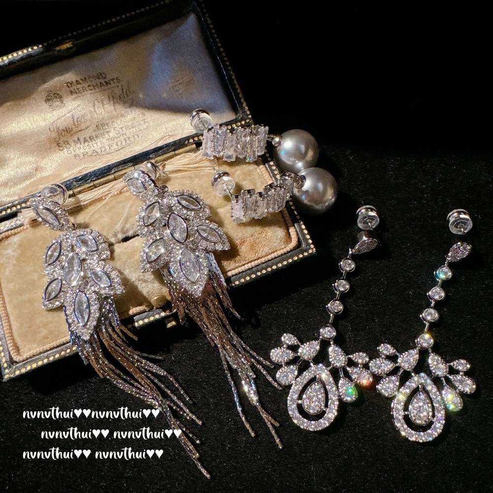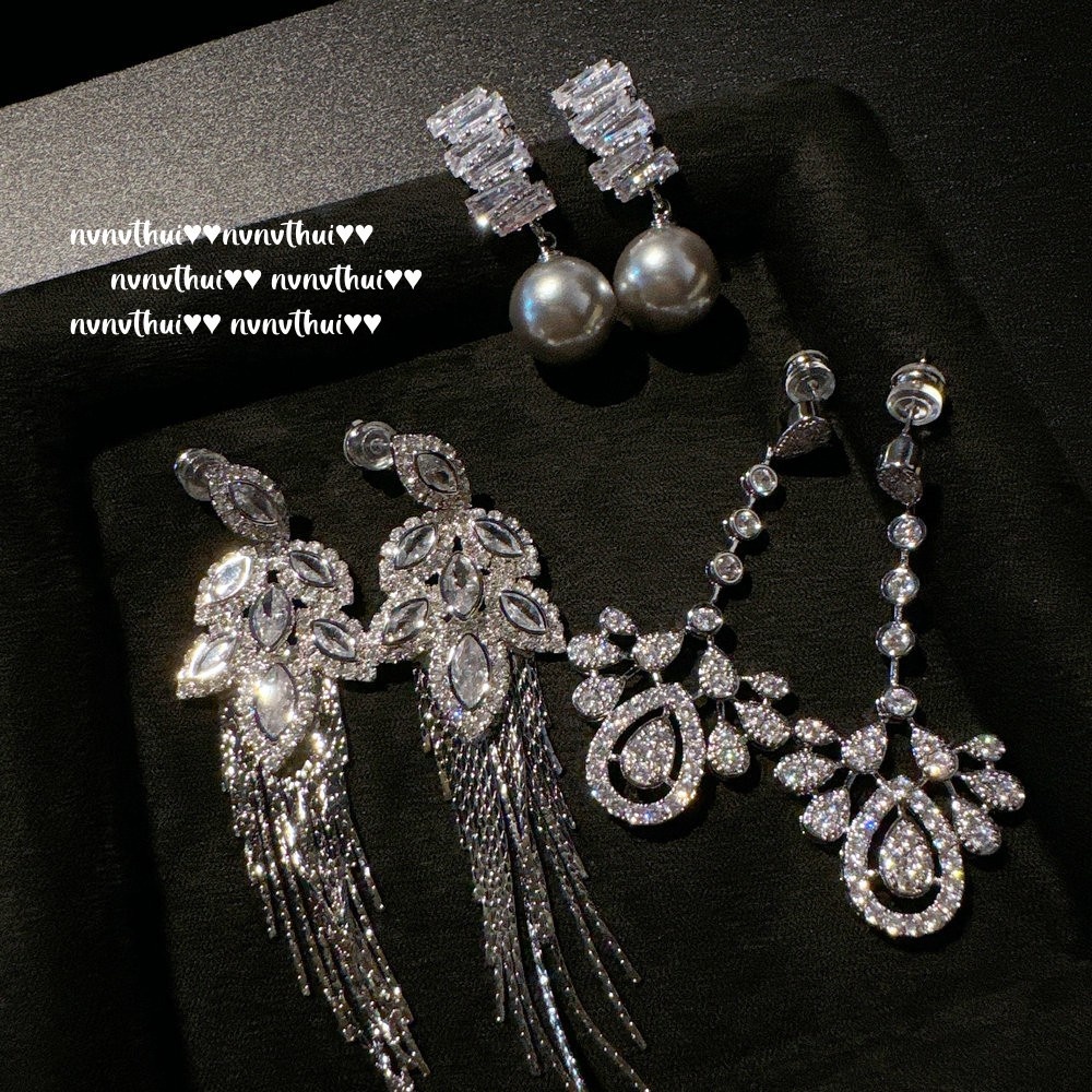 Sparkling Wheat Ear Drop Gem Earrings Tahiti Deep Sea Bead Sugar Zircon Earrings Combination