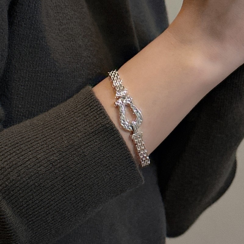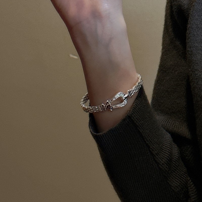 S925 Sterling Silver Korean Style Niche Design Horseshoe Texture Bracelet Korean Style Fashion Texture Bracelet