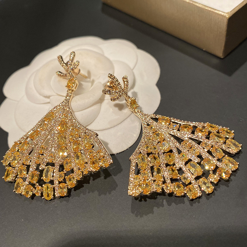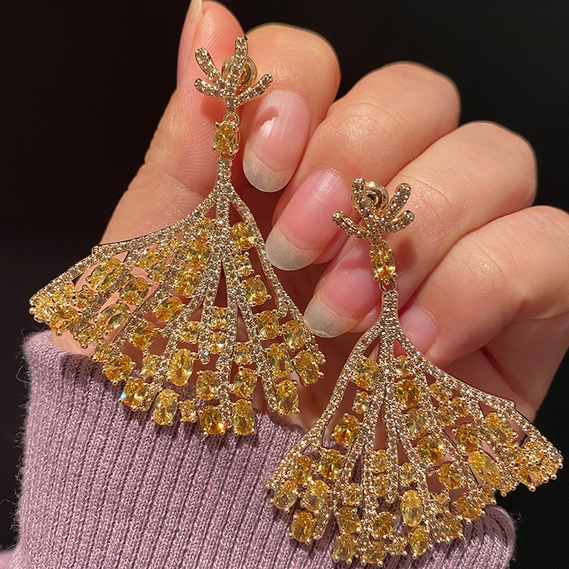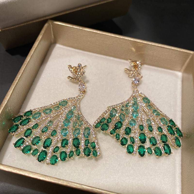 Ni Ni High-end Light Luxury Colorful Fan-shaped Earrings Small Skirt Elegant Retro Fashionable Elegant Earrings