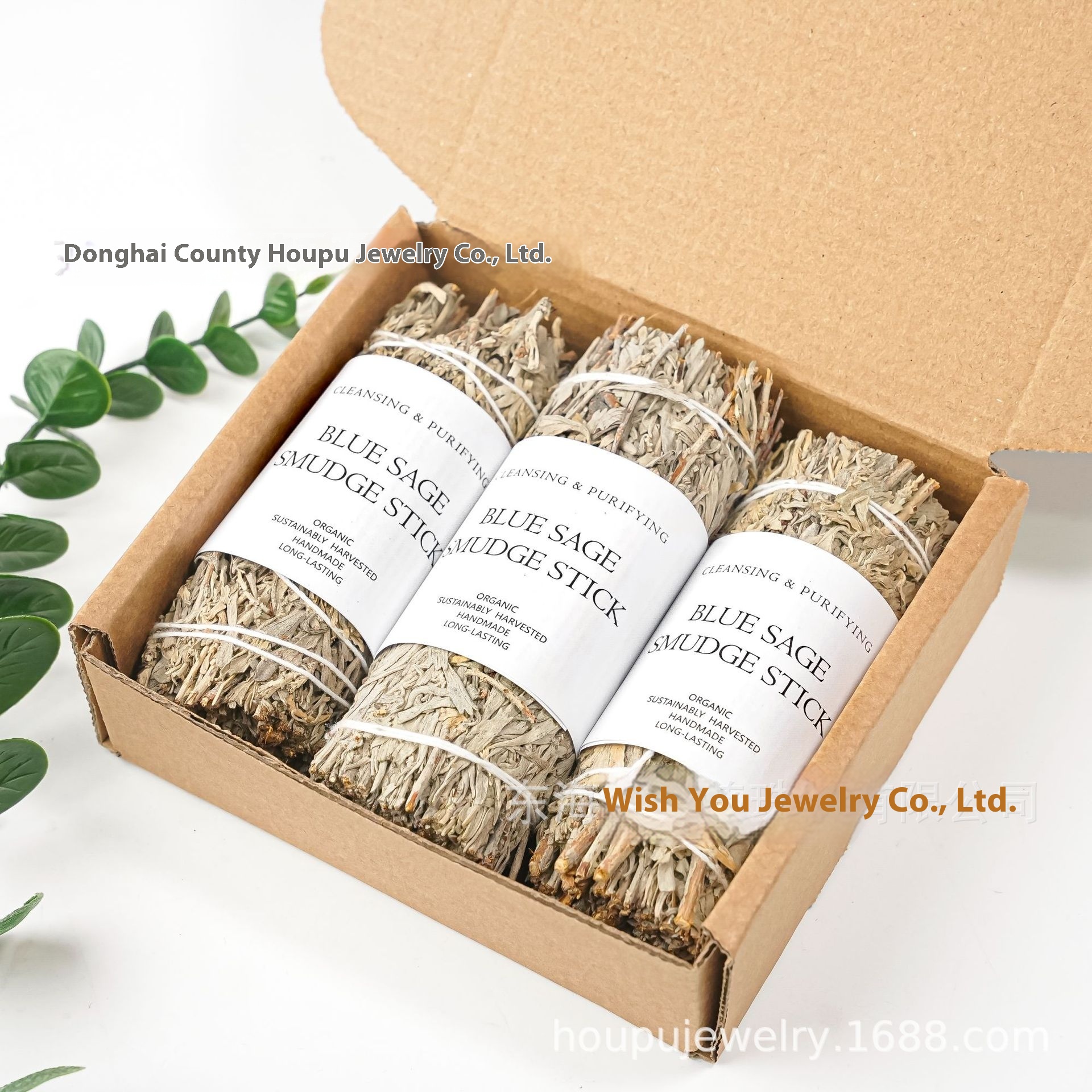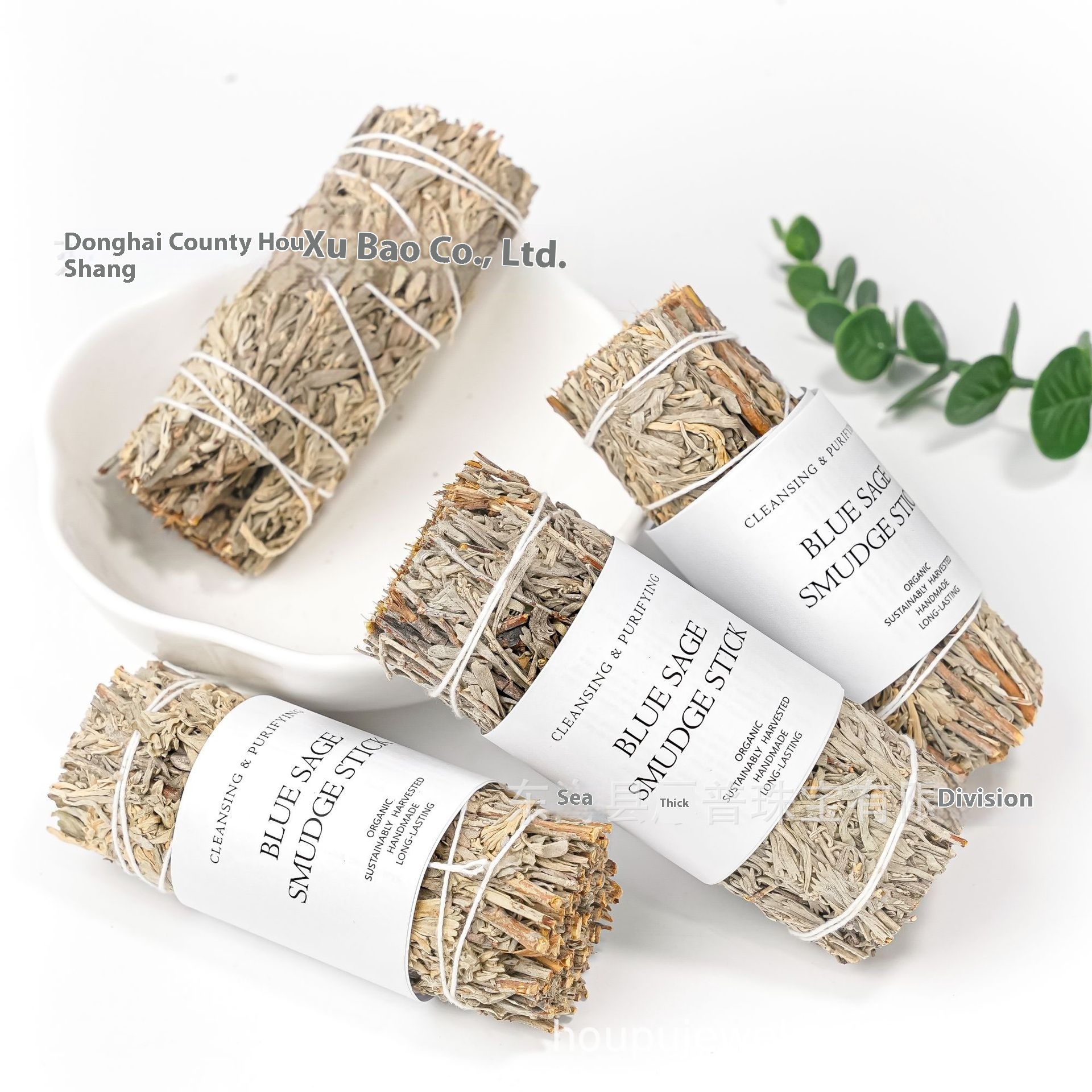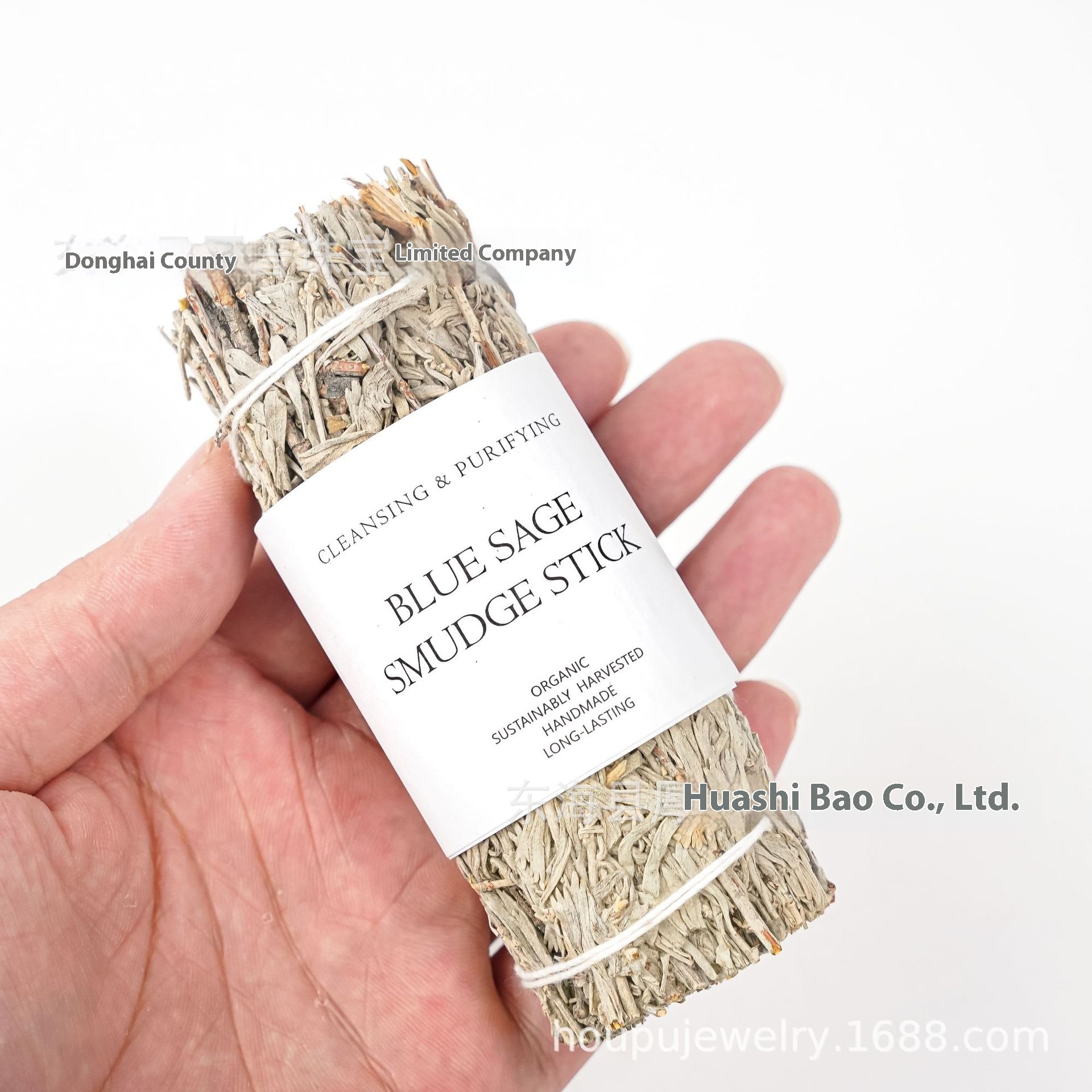 4 Inch Natural Blue Sage Dry Flower Suit Hand Strapping Aromatherapy Decoration Home Purify Fresh Air