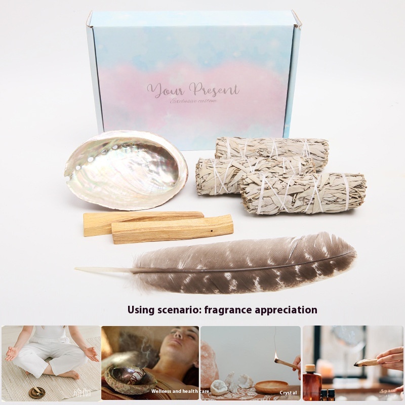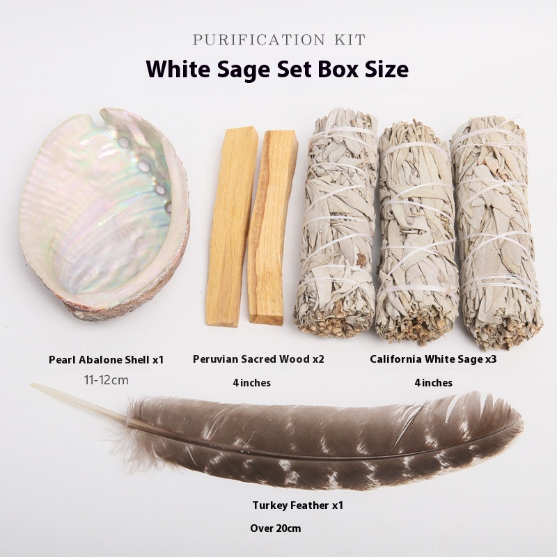 White Sage Cleaning Kit Turkey Feather Abalone Shell Purification Tool White Sage