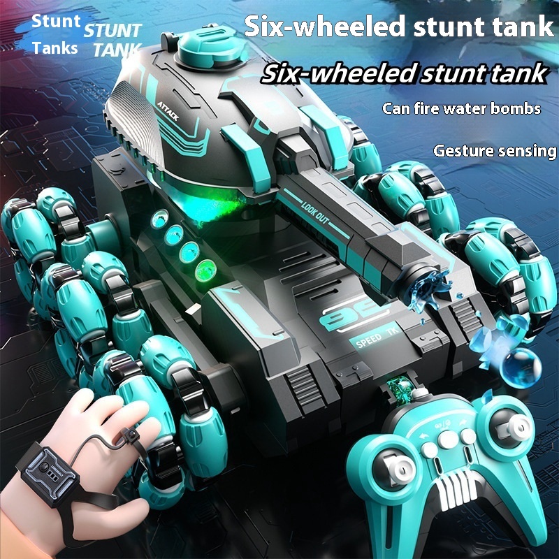 Remote Control Tank Six-wheel Stunt Car 2.4G Gesture Induction Deformation Climbing Off-road Remote Control Car Children's Toys FCC
