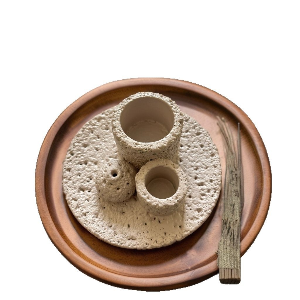 Multifunctional Cement Space Textured Candle Holder Sage Line Fragrance Peru Holy Wood Burning Disc
