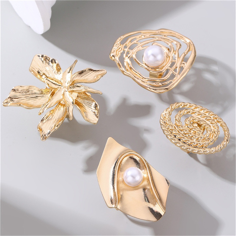RZ0834 E-commerce Jewelry Personality Exaggerated Irregular Ring Women's Hollow Pearl Flower Ring