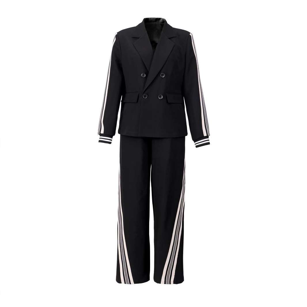 Spring European And American Foreign Trade Women's Long Sleeve Stitching Casual Loose Suit Two-piece-E92