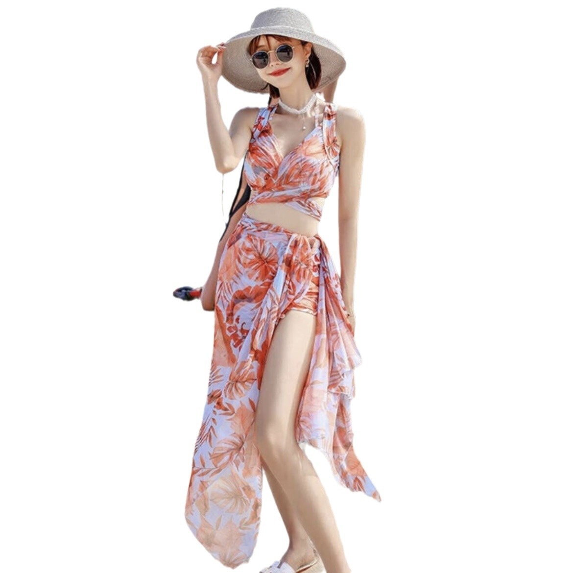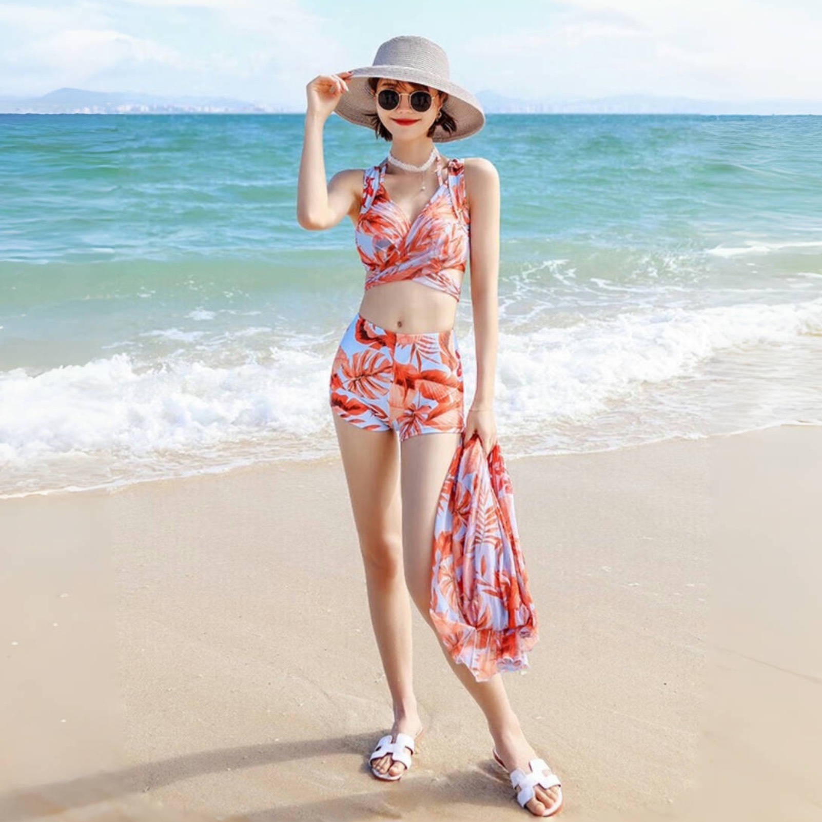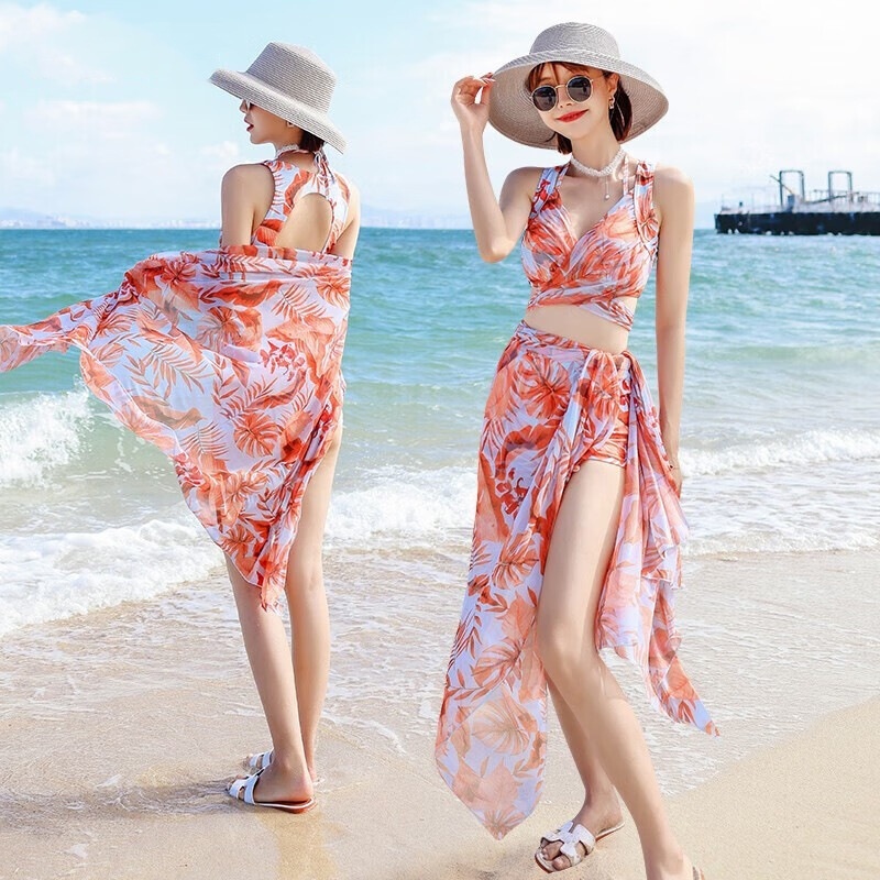 Swimsuit Women's Bikini Three-piece Hot Spring Flat Angle Fashion Slim Split Sunscreen Swimwear