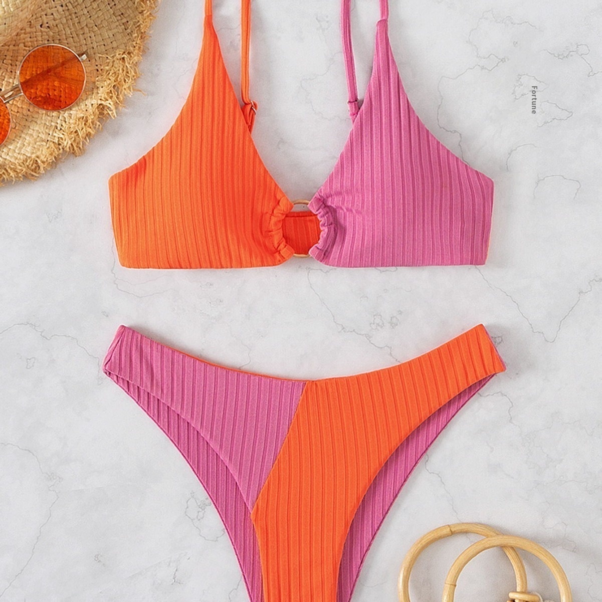 Swimsuit Split Color Bikini Foreign Trade Pit Strip Backless Bikini Swimsuit