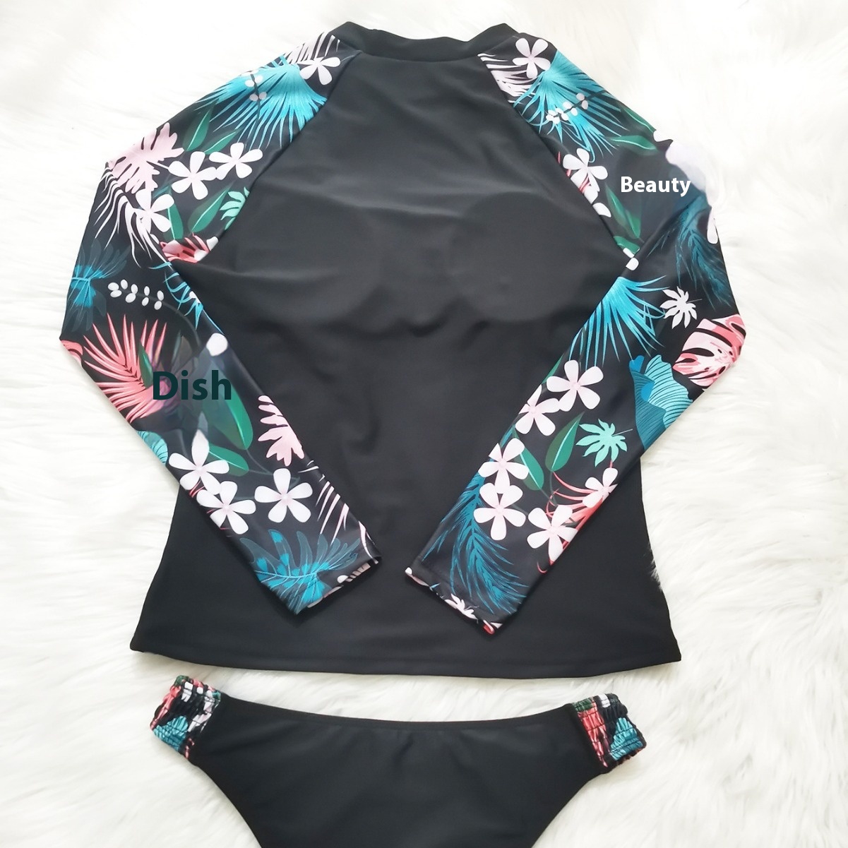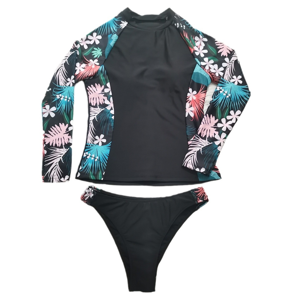 Fashion Tight Split Swimsuit Women's Sexy Briefs Printed Long Sleeve Conservative Foreign Trade Swimwear In Stock