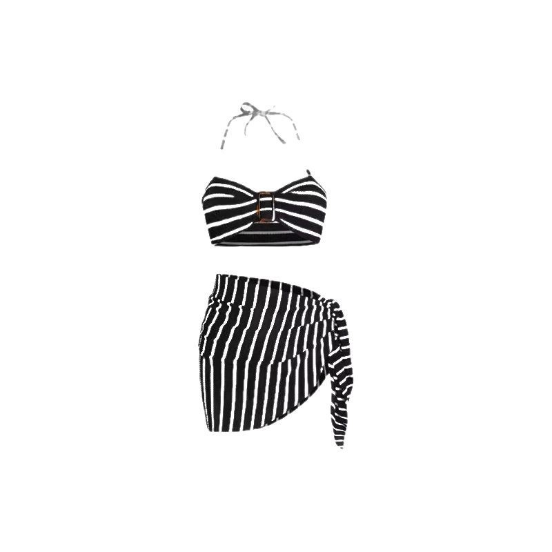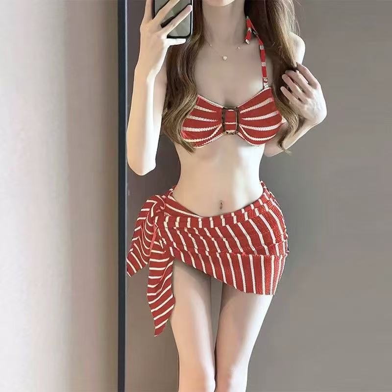 Sexy Bikini Swimsuit Women's Three-piece Suit High-grade Striped Split Seaside Hot Spring Swimsuit