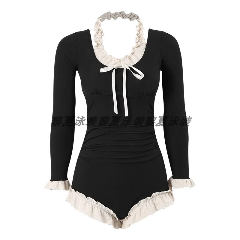 Arrival One-Piece Swimsuit High-Face Value Western Style Korean Style Bow Solid Color Ear Edge Seaside Vacation Hot Spring Summer