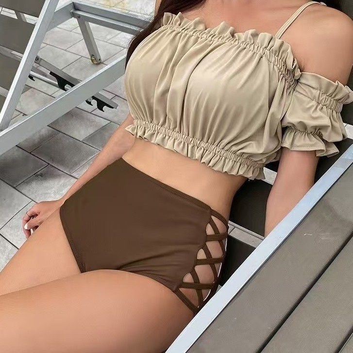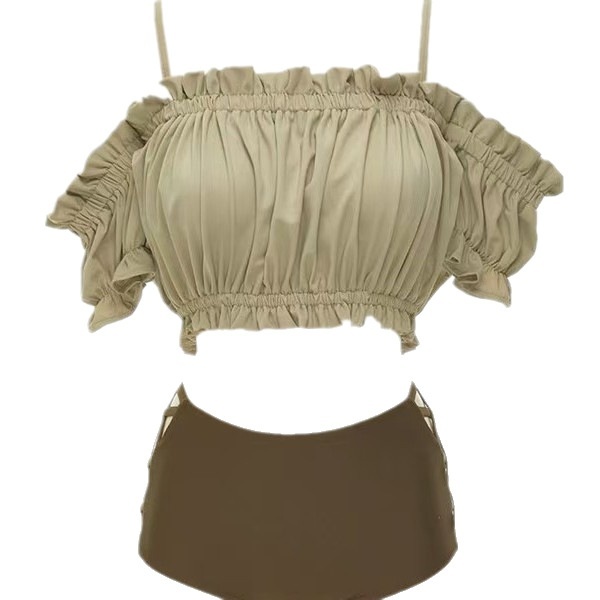 Arrival Split Swimsuit Women's Korean Style Bubble Sleeve Off-shoulder Tube Top Steel Brace Push-up Bikini
