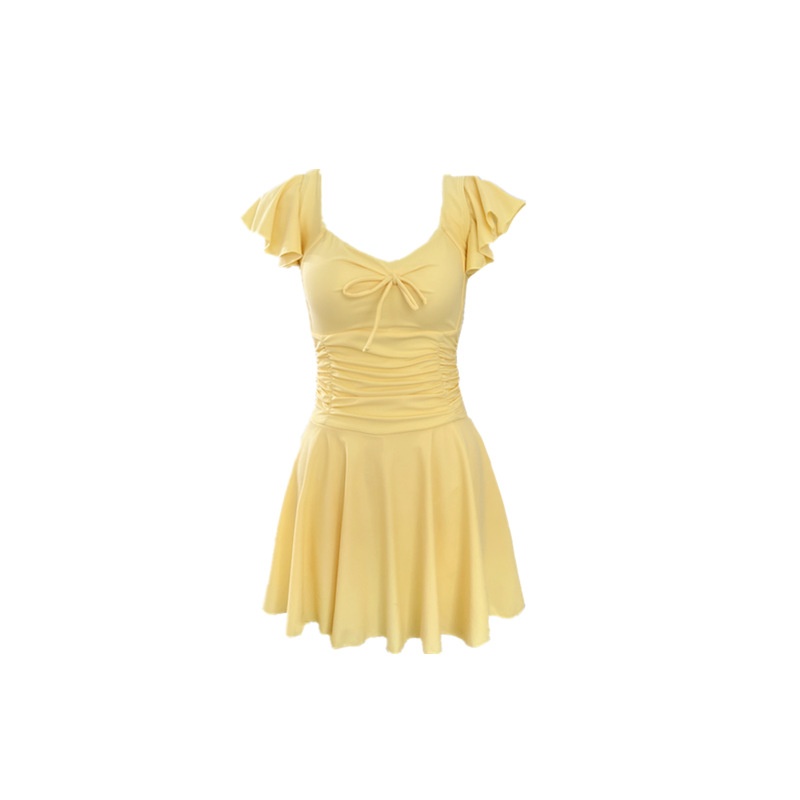 Swimwear Women's Skirt-style Conservatively Covering Belly Slimming Girl's Small Chest Gathering High-end Hot Spring Swimwear