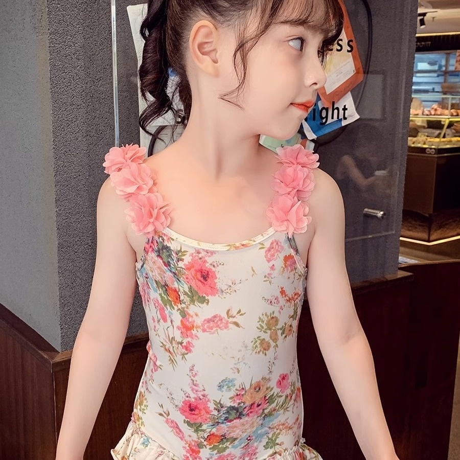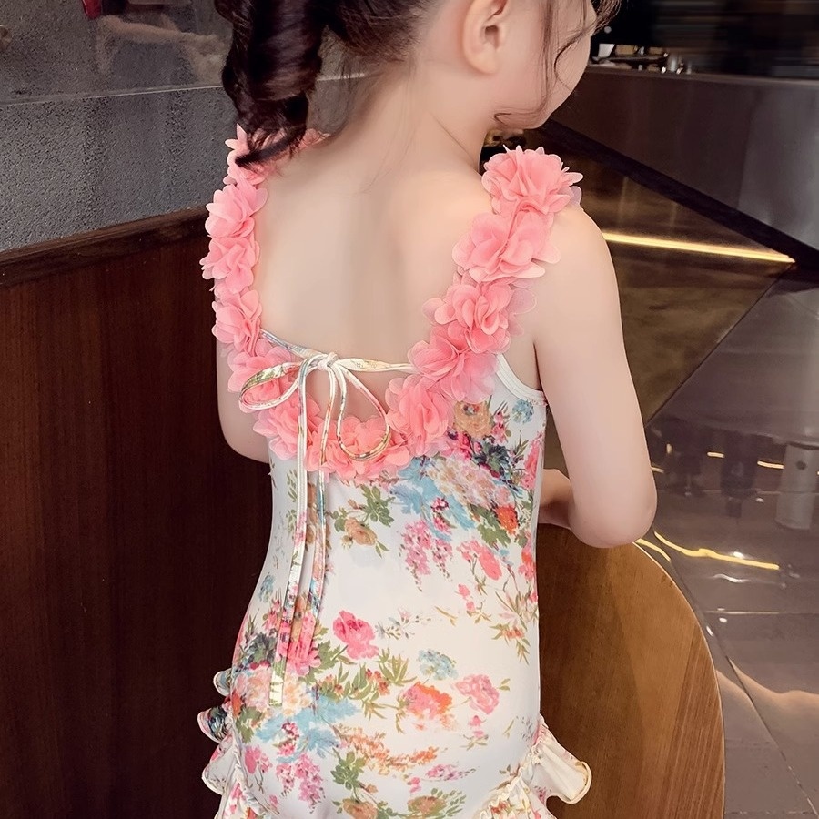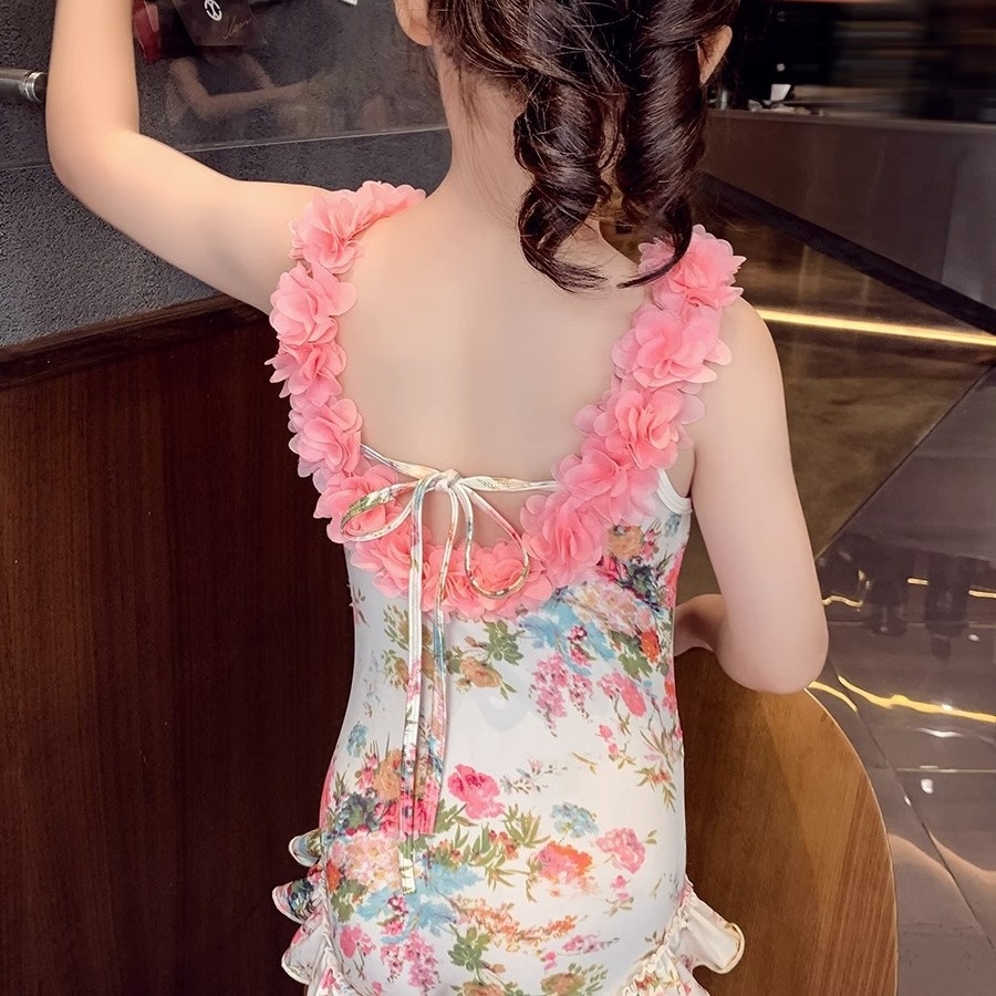 Girls' Summer Swimsuit Children's Flower Beautiful Back Swimsuit Quick-Dry Floral Swimsuit For Little Girls