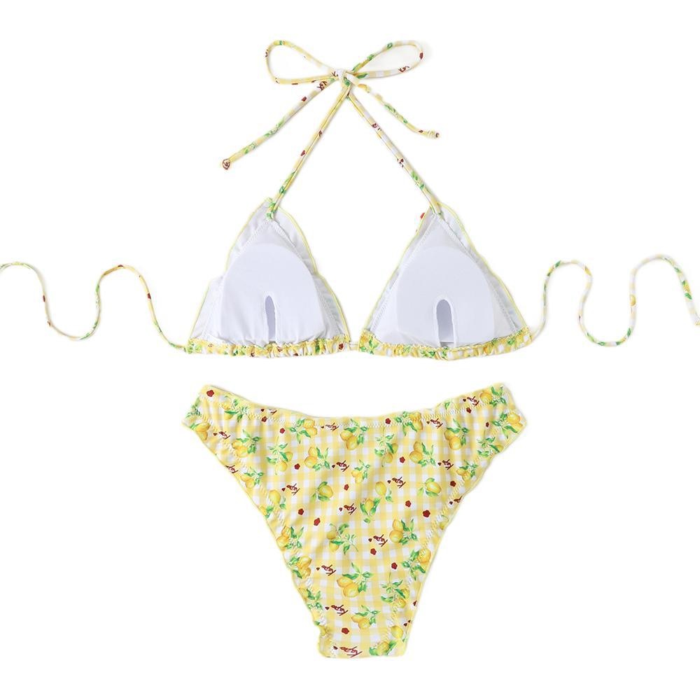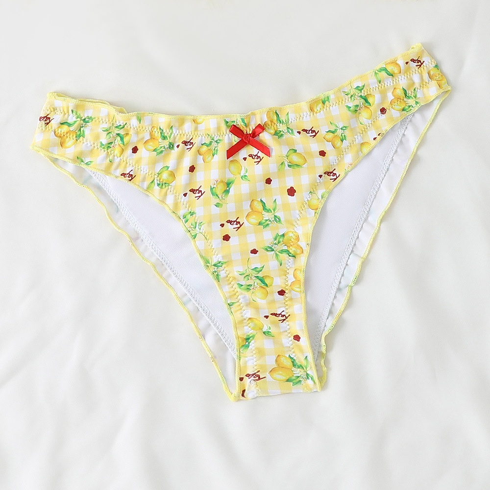 European And American Style Sexy Printed Band Bow Triple Split Women's Swimsuit Bikini Bikini Swimsuit