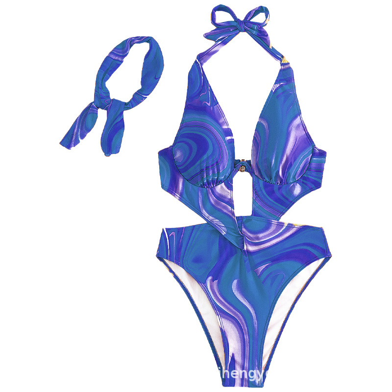 Women's One-piece Swimsuit Sexy Steel Support Gathered Backless BIKINI Foreign Trade Swimsuit