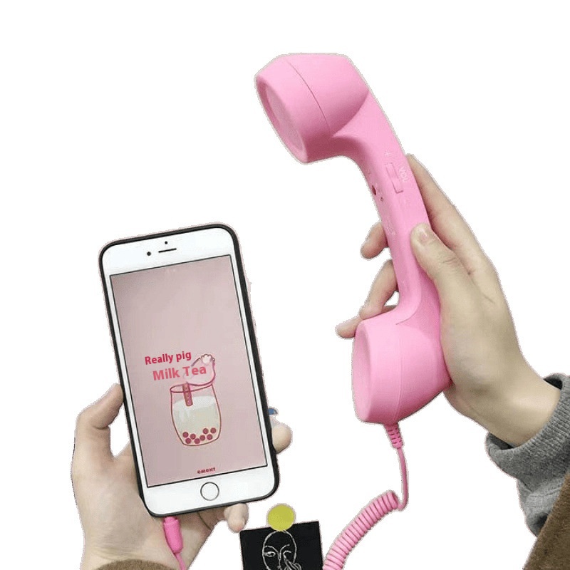 The Phone Network Red Wired Headphones Girl Heart Trembles To Answer The Phone Retro Mobile Phone Headphones Earpiece Outside Cute