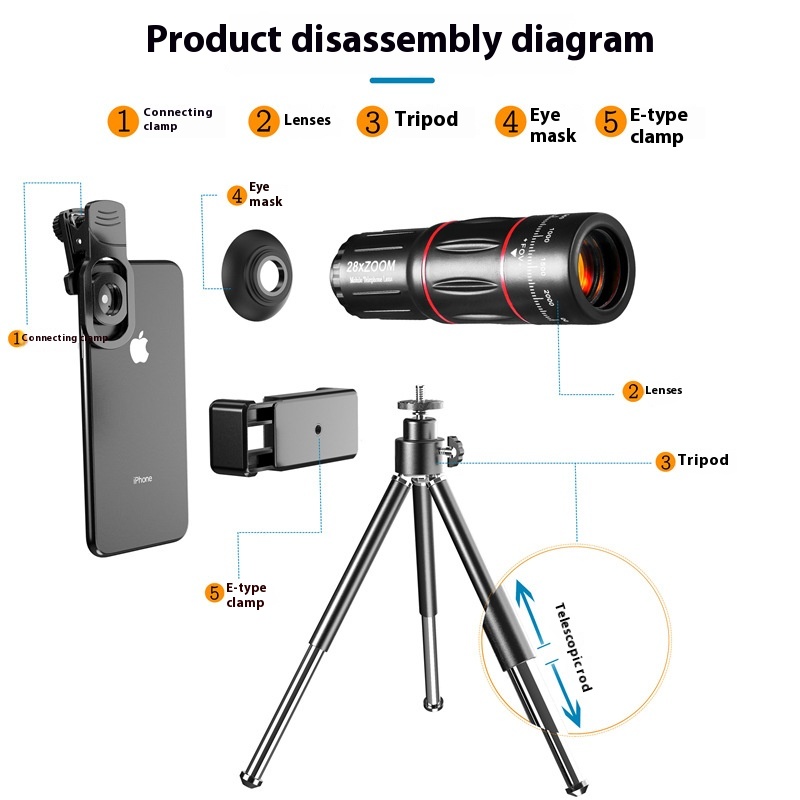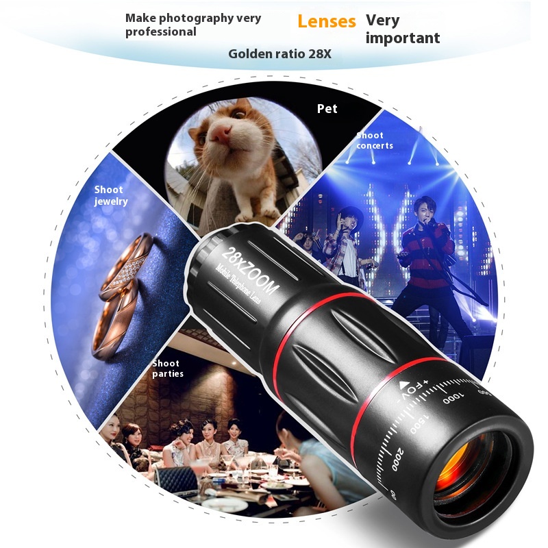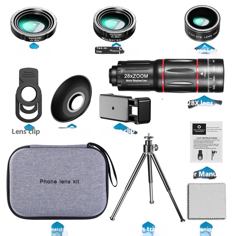 Mobile Phone Telephoto Lens 28X Wide Angle Macro Fisheye 4 In 1 Suit Phonelens HD External Camera