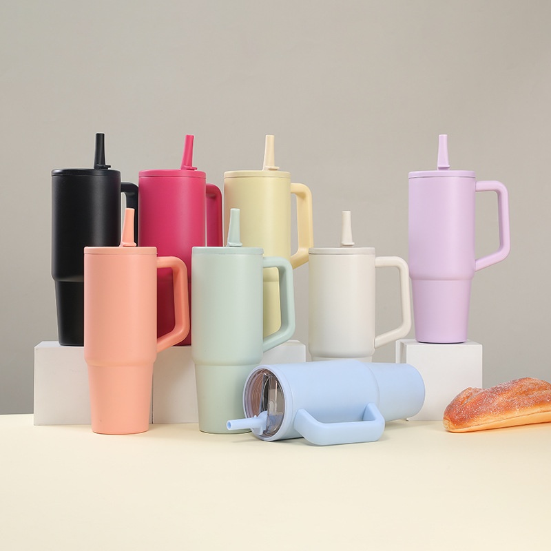 Simple 30oz Double Layer Ice Cup Vacuum Ulation Leak-proof Folding Suction Nozzle Car Cup With Handle