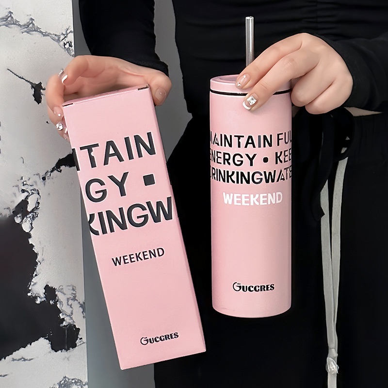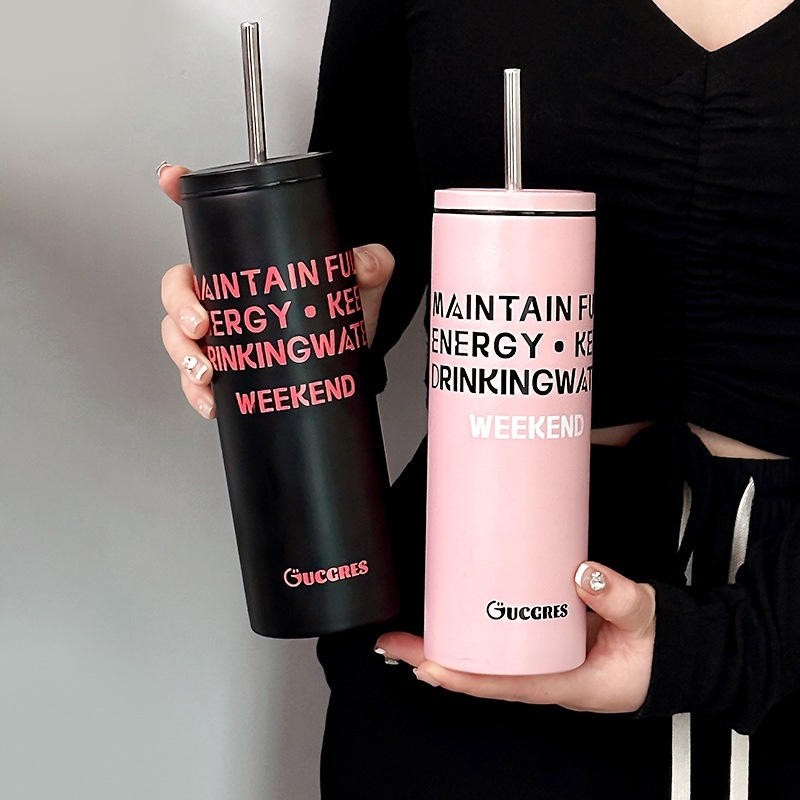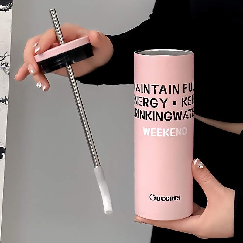Foreign Trade High Color Value Dopamine Stainless Steel Cup Simple Portable Straw Thermos Cup Printable Cup