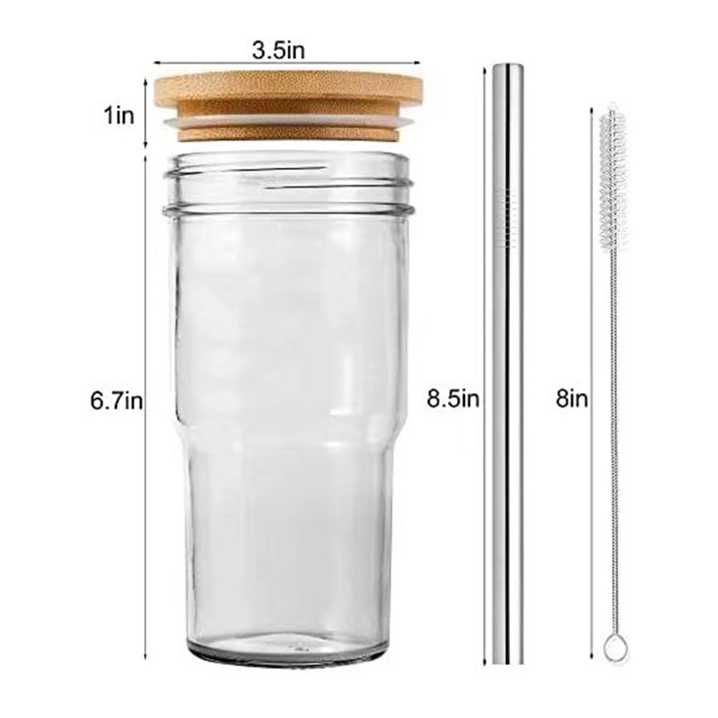 Car Straw Milk Tea Cup With Wooden Lid Glass Cup Cold Drink Drink Cup Glass Juice Bottled