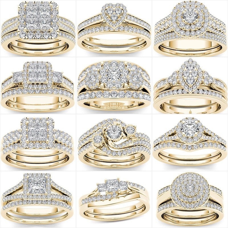 Sanjie TEMU Ring European And American Couple Pair Ring Gold-plated Inlaid Zircon Ring Female Outlet