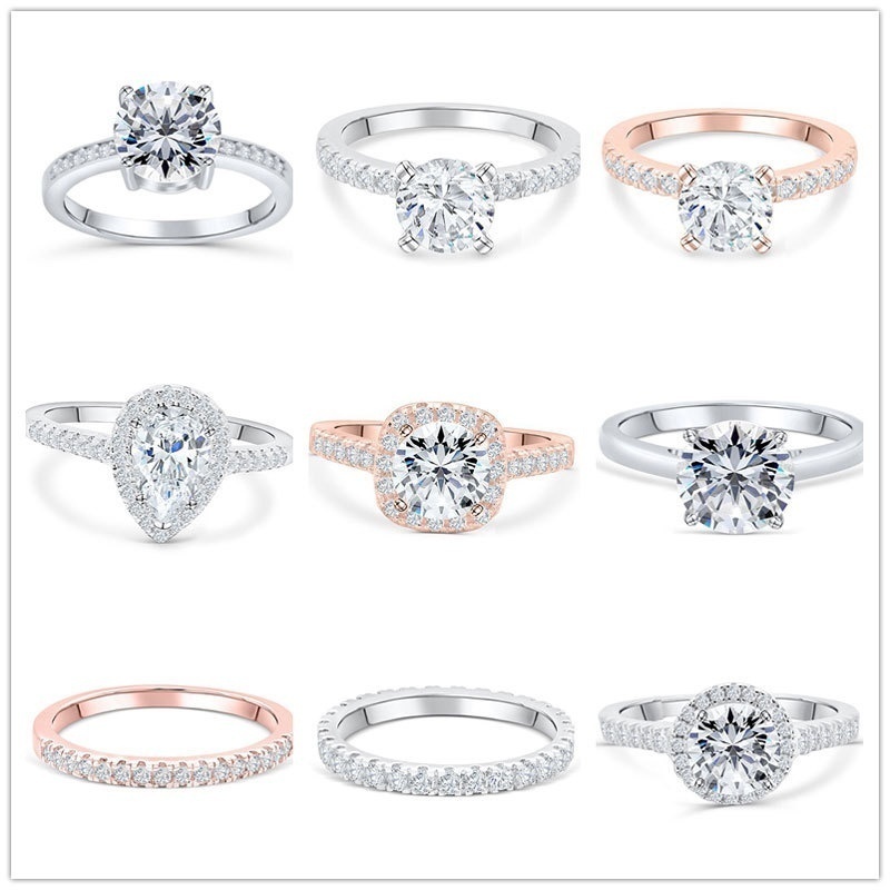 Tong Lin Europe And The United States Best Selling 925 Sterling Silver Ring Women's Zircon Set Engagement Wedding Ring Set